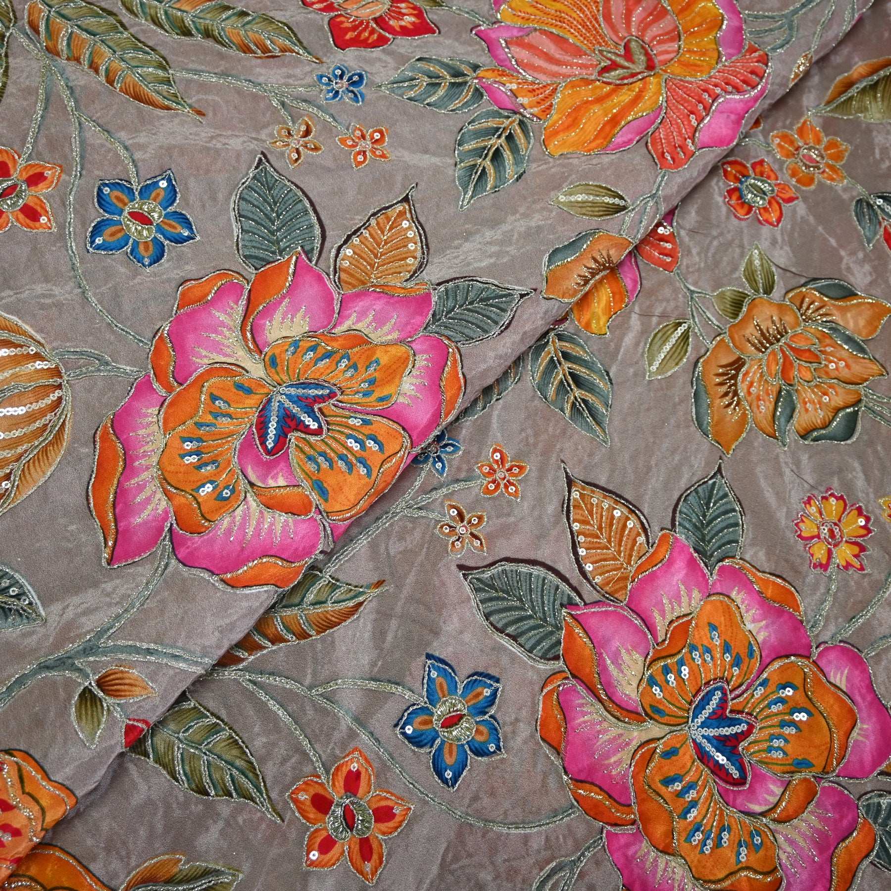 Product Name: Crepe Position Print Zari Sequins Embroidery Fabric