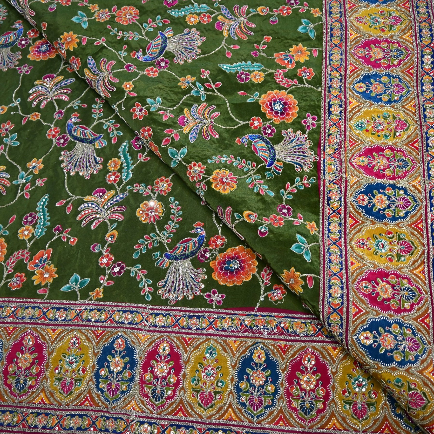 The highlight of this fabric is its elegant one-side embroidered border, which enhances the beauty of hemlines, dupattas, gowns, and ethnic silhouettes, giving every outfit a royal appeal. Ideal for high-end festive, party, and wedding wear creations.