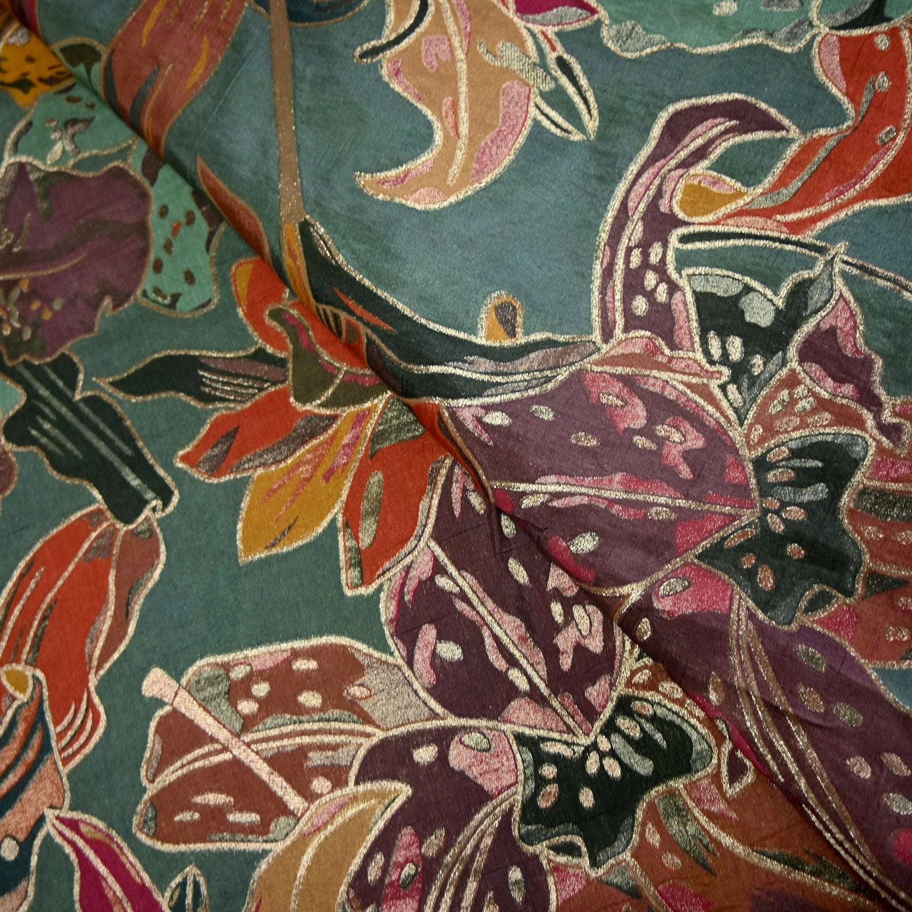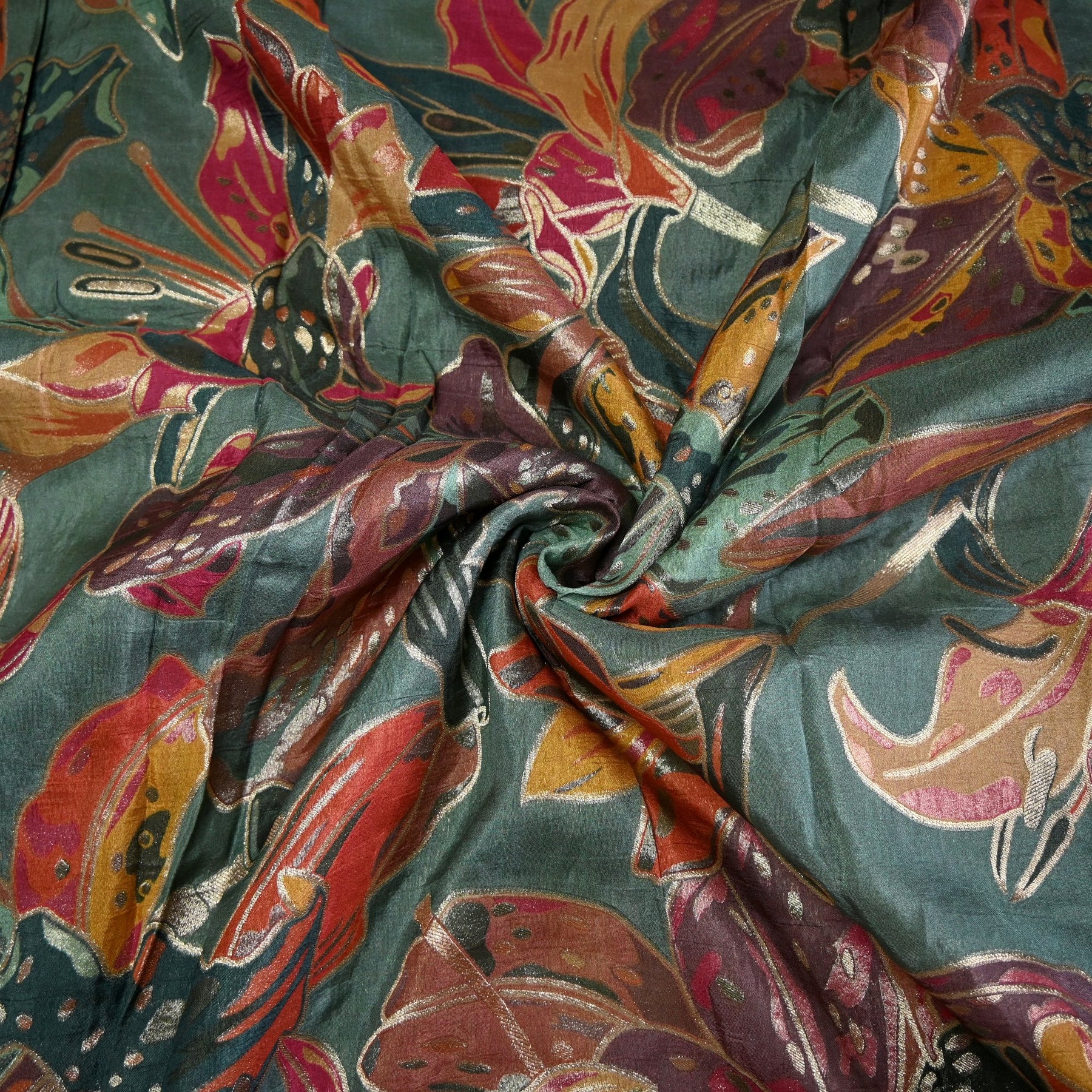 Dola Silk Position Print with Zari Jacquard Fabric