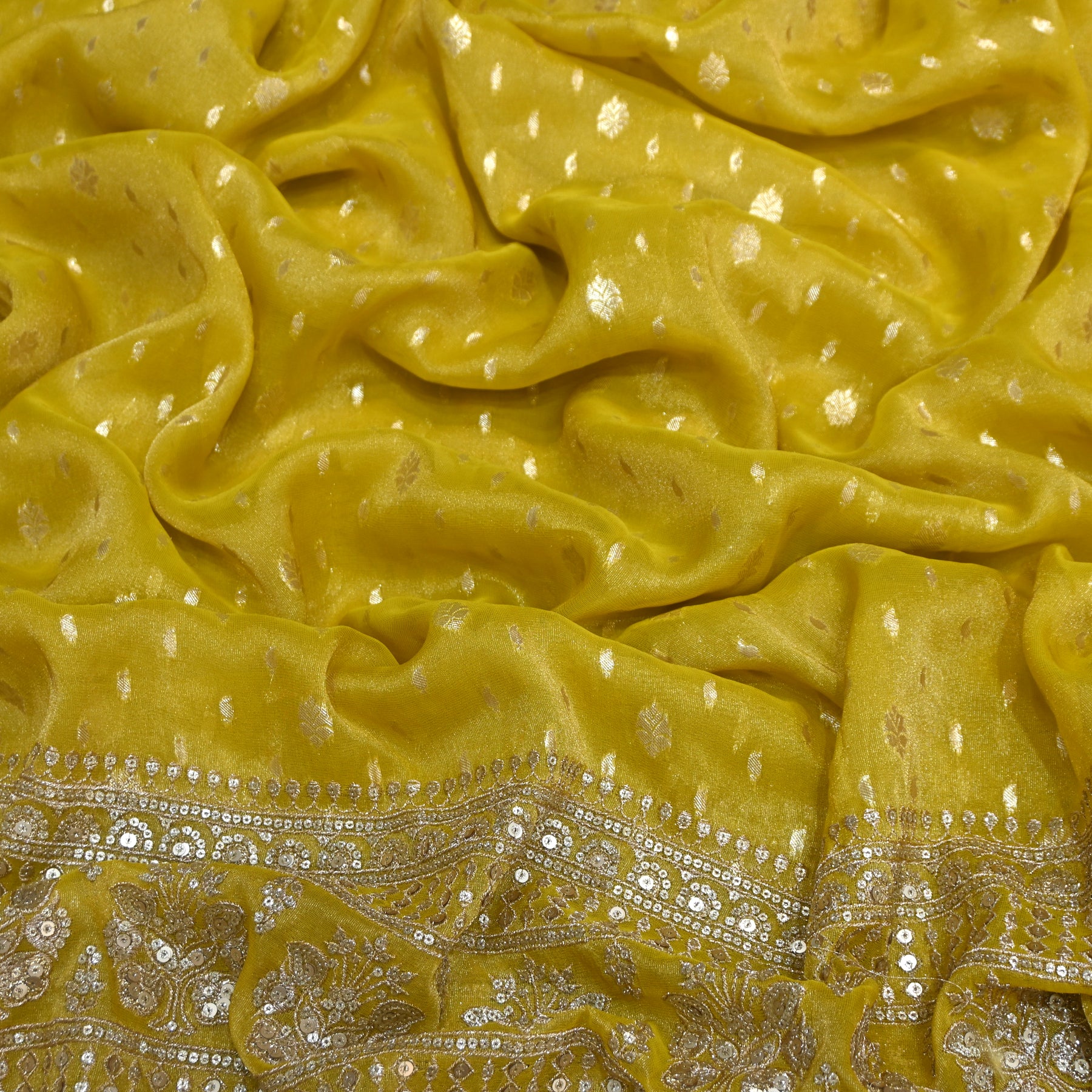 Georgette Tissue Zari With Sequence Embroidery Fabric