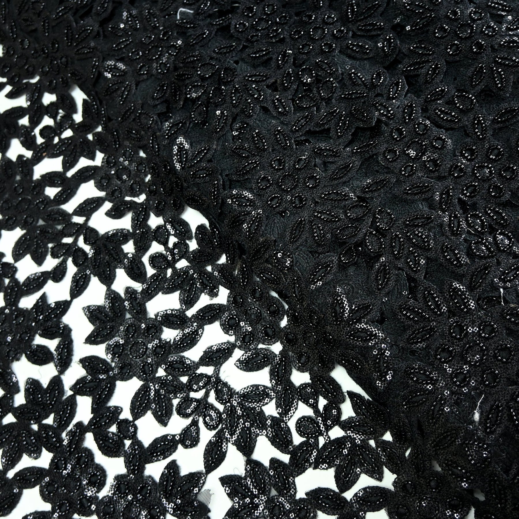 Net Cut Work With Cut Dana Sequins Embroidery Fabric