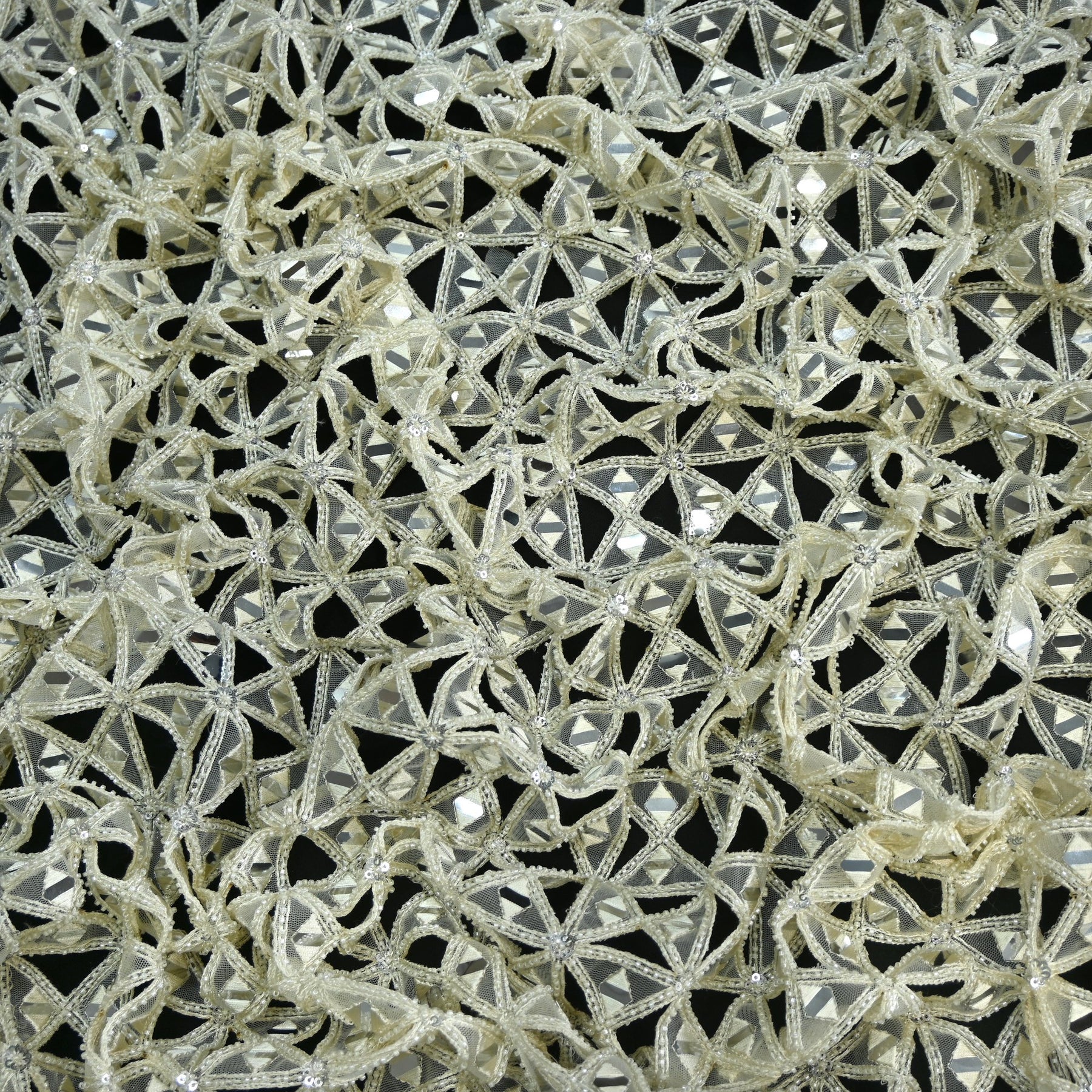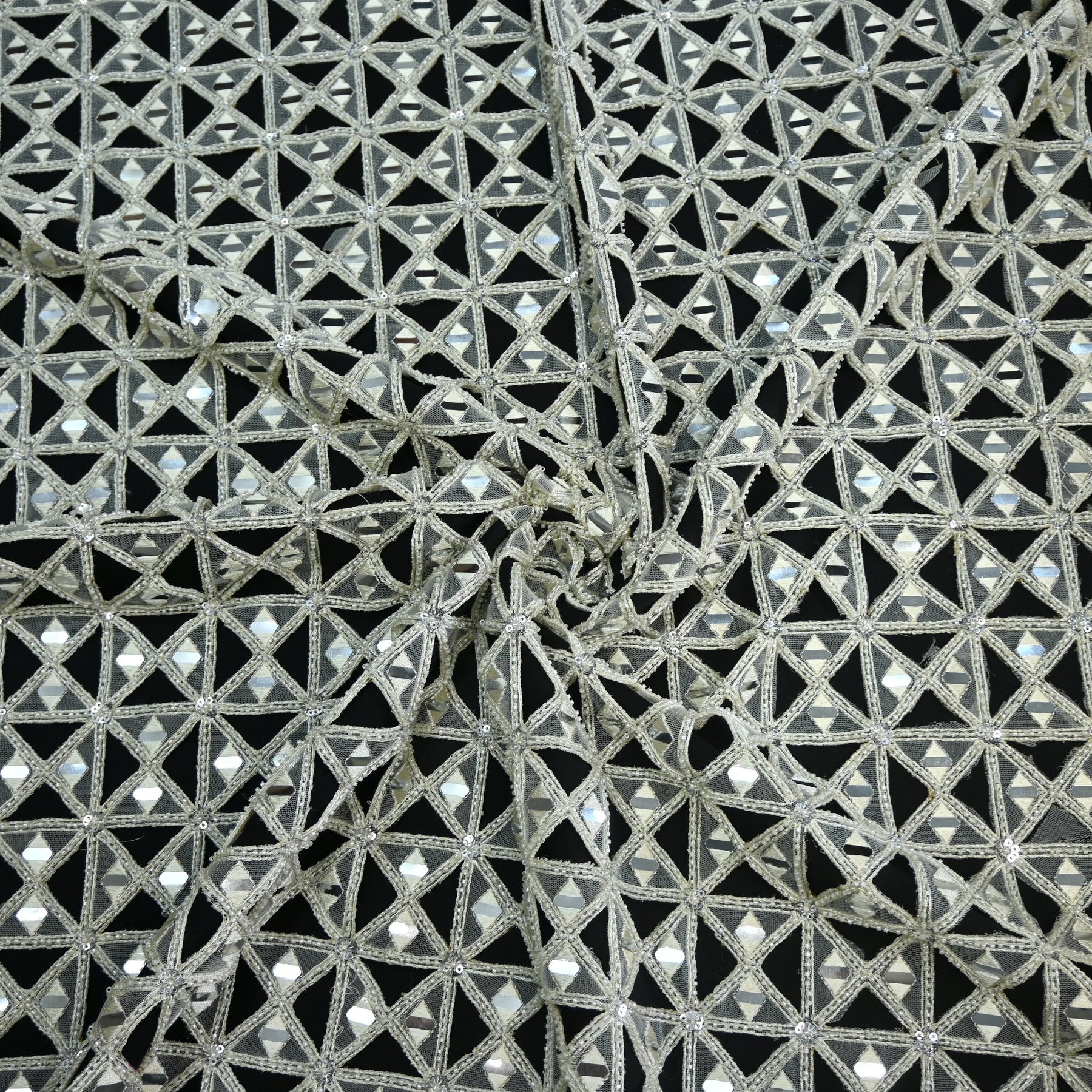 Product Name: Net Cutwork Mirror & Cutdana Embroidery Fabric