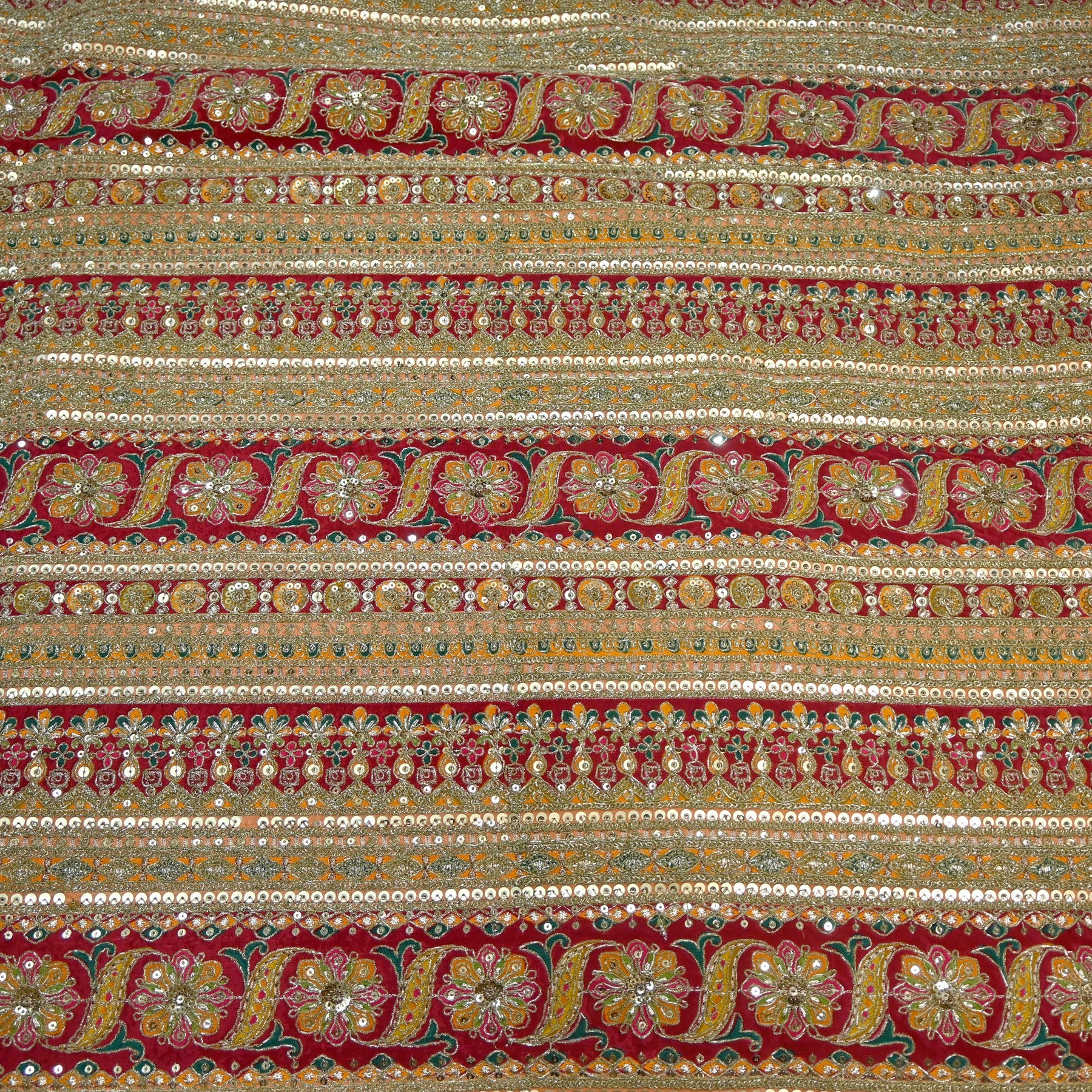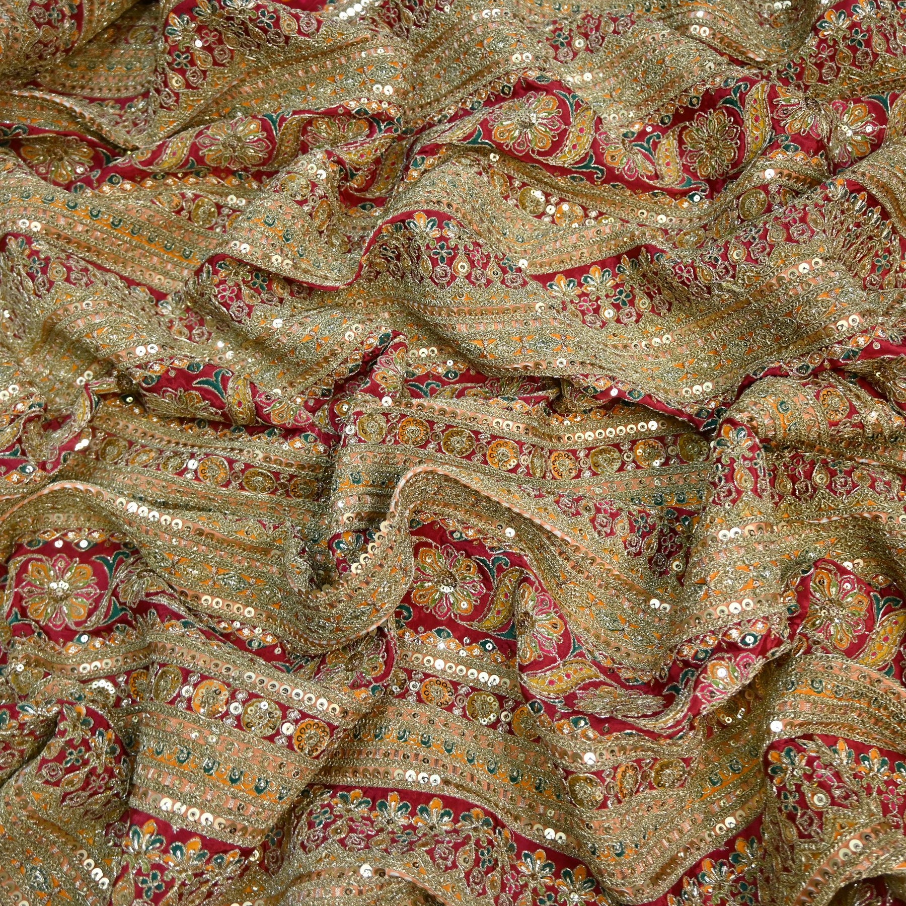 Product Name: Royal Crepe Floral Position Print Zari & Sequins Embellished Fabric