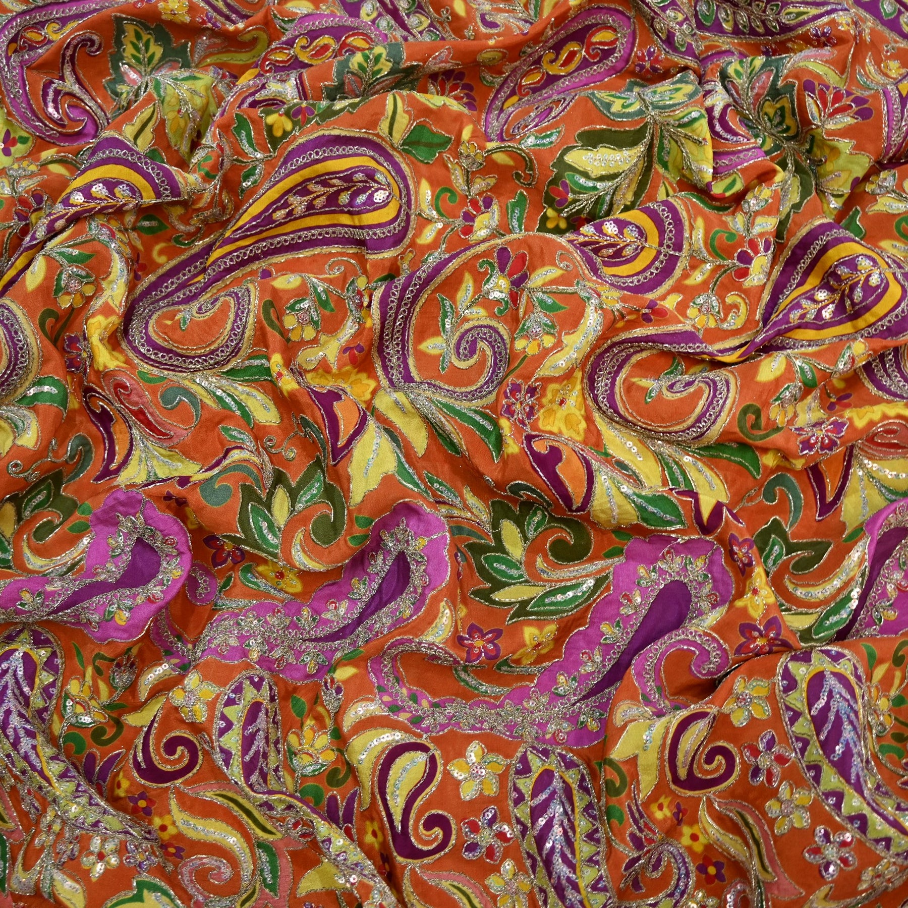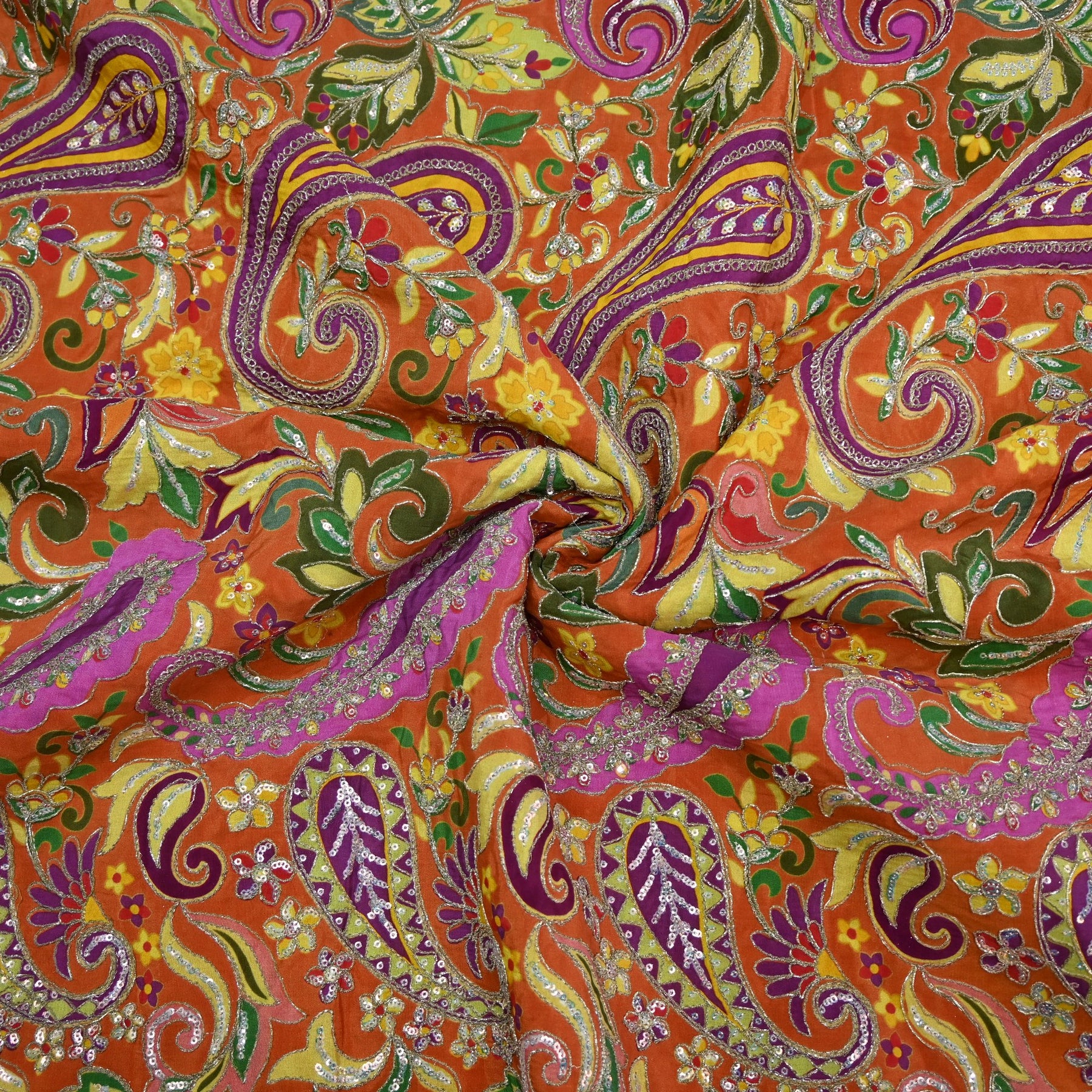 Product Name: Royal Crepe Floral Position Print Zari & Sequins Embellished Fabric