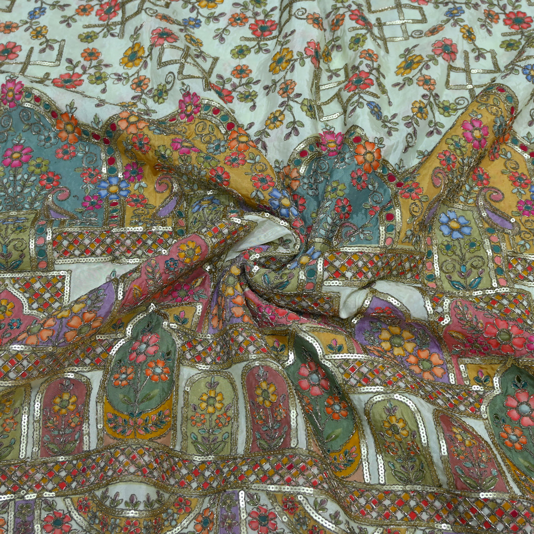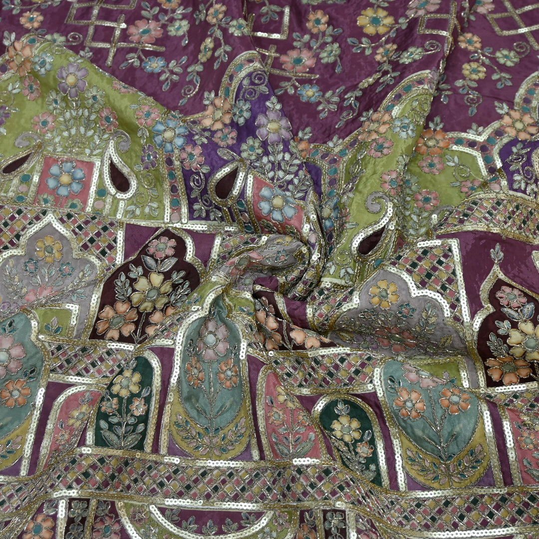 Crepe Position Print Zari With Sequins Embroidery Fabric