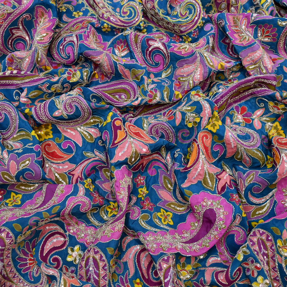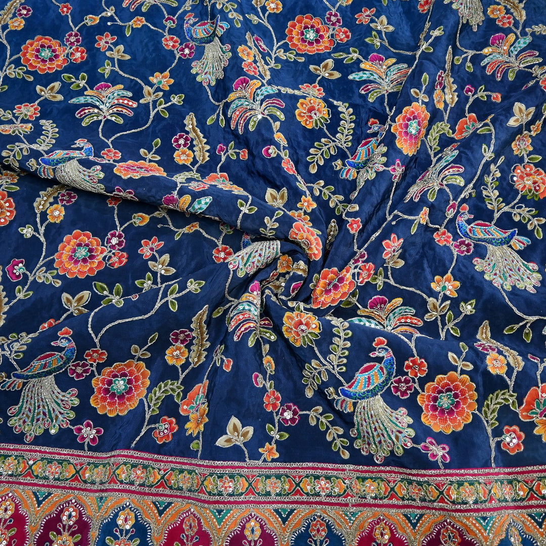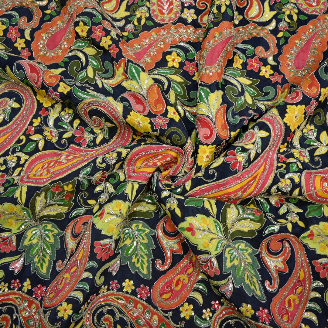 Royal Crepe Position Print Zari & Sequin Heavy Work Fabric