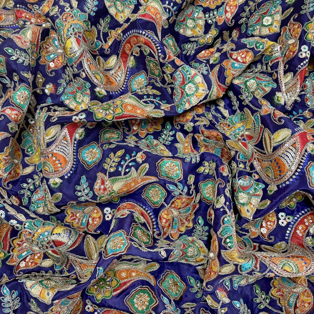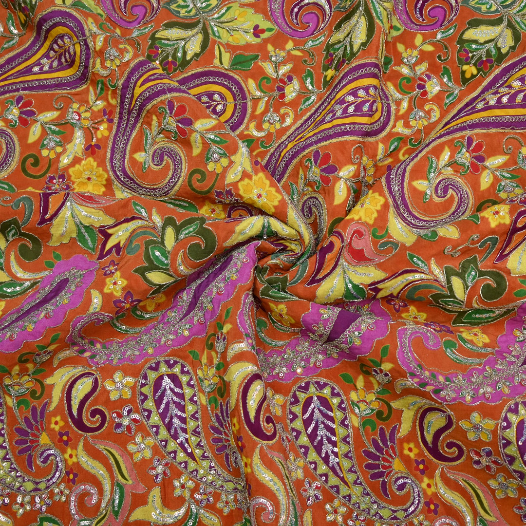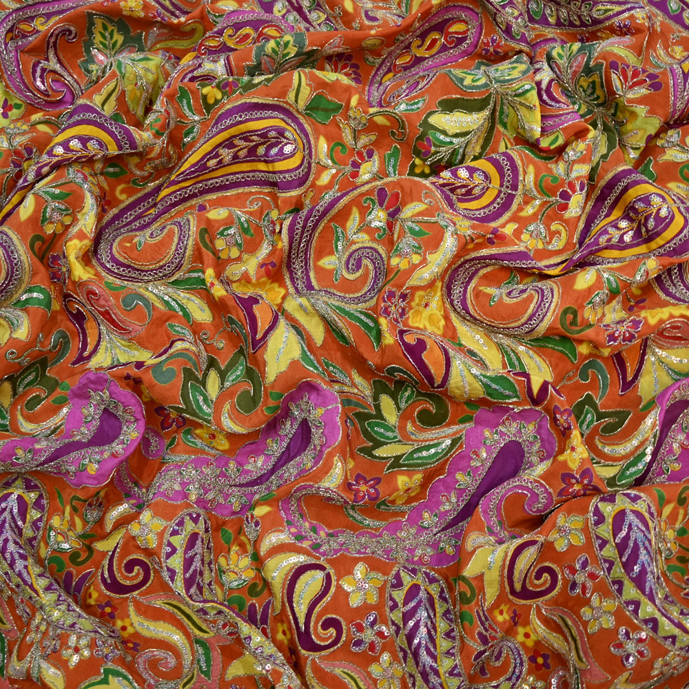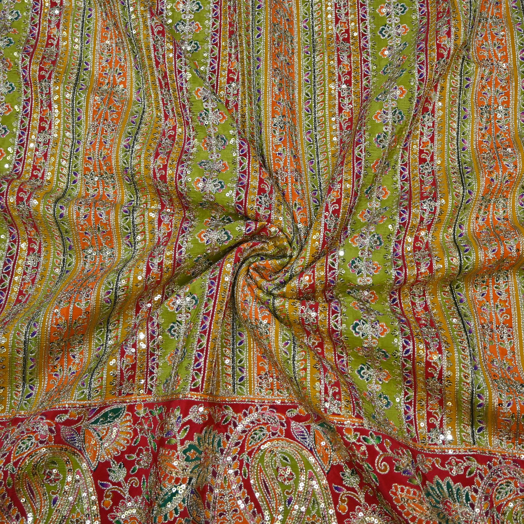 Royal Crepe Position Print Zari & Sequin Heavy Work Fabric