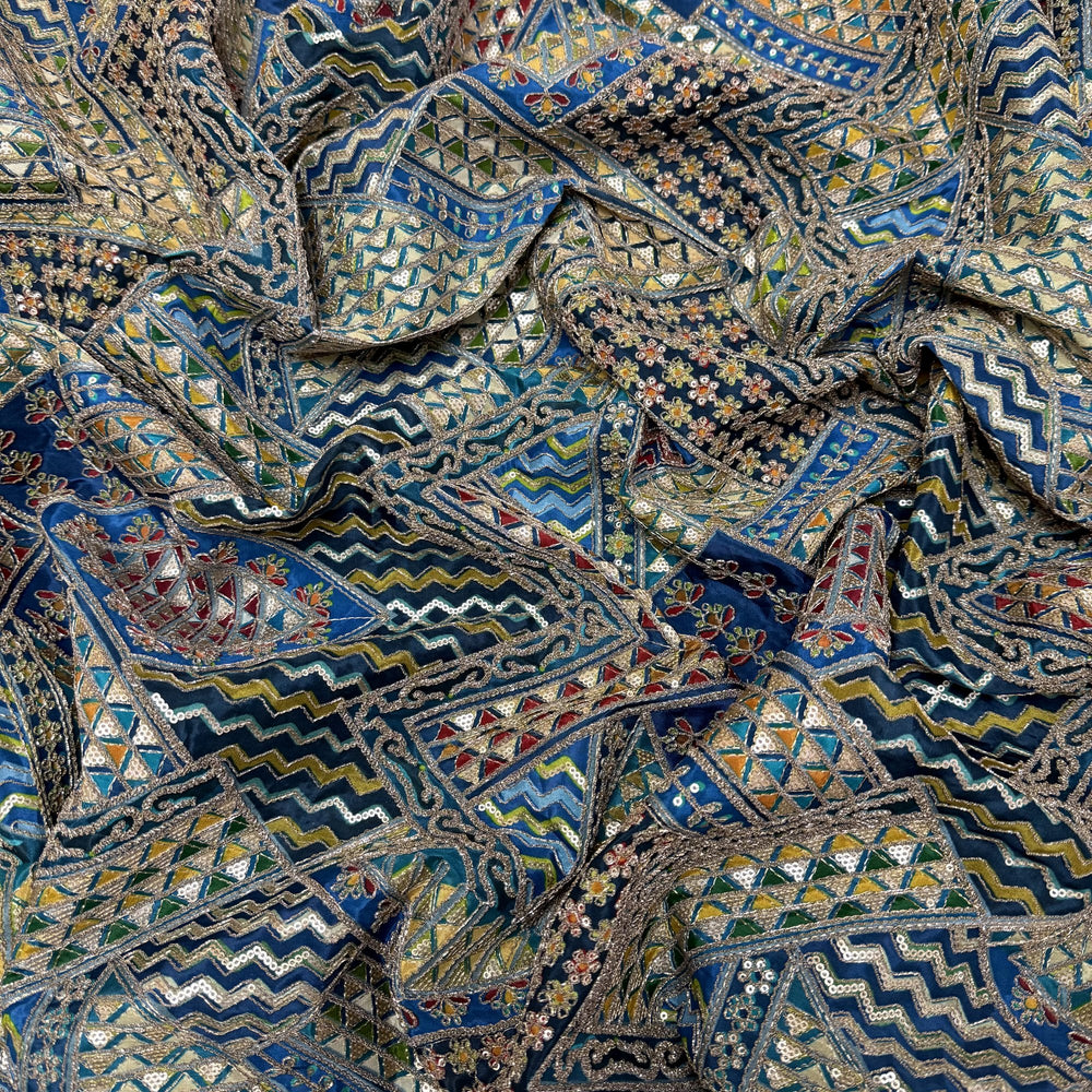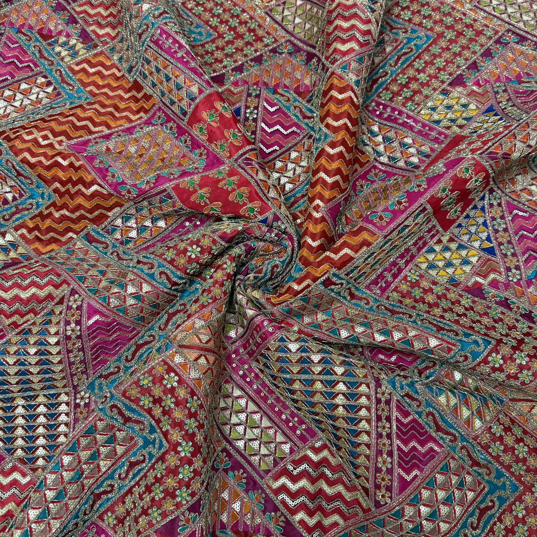 4D Shade Chanderi Gota Zari Strip Embroidery Fabric
