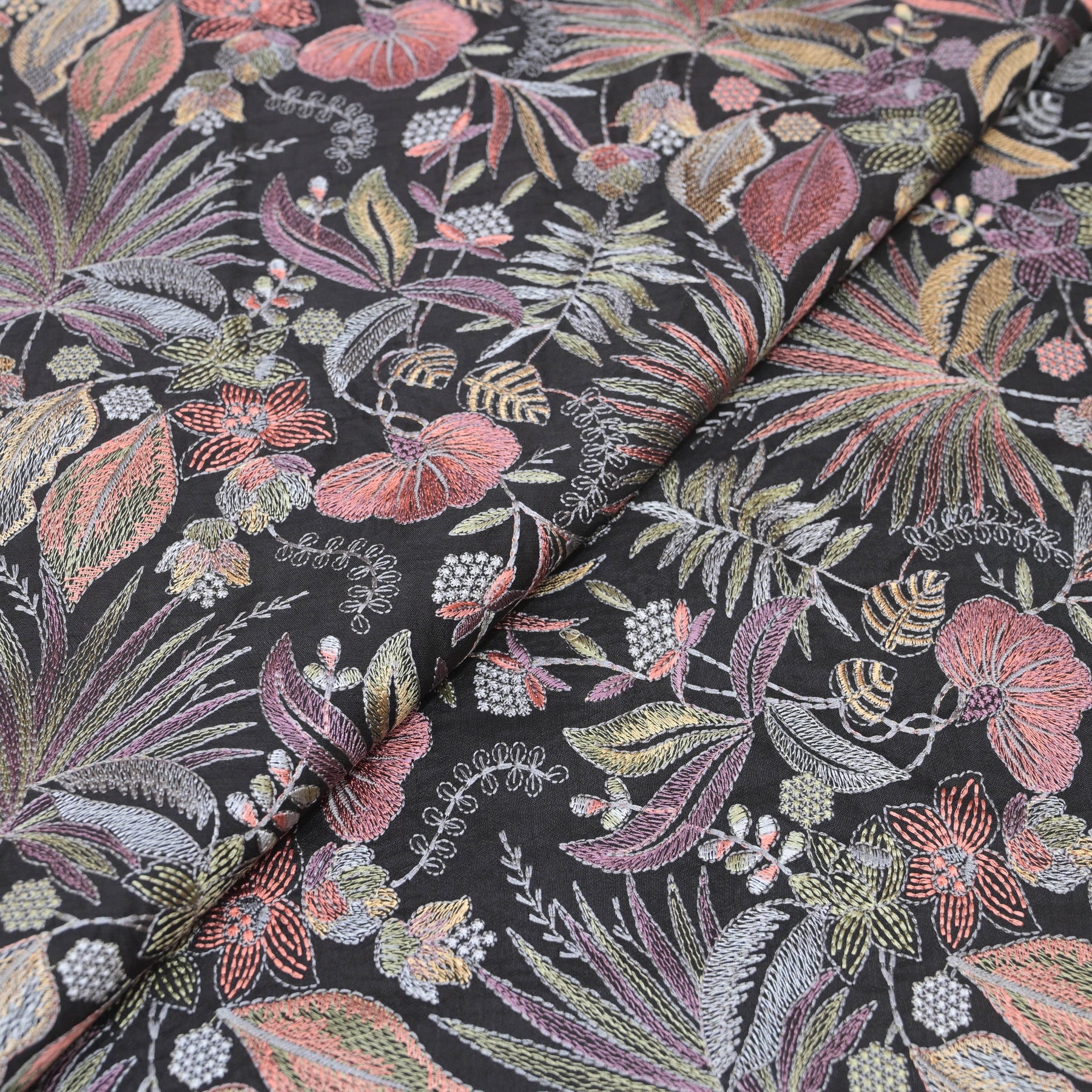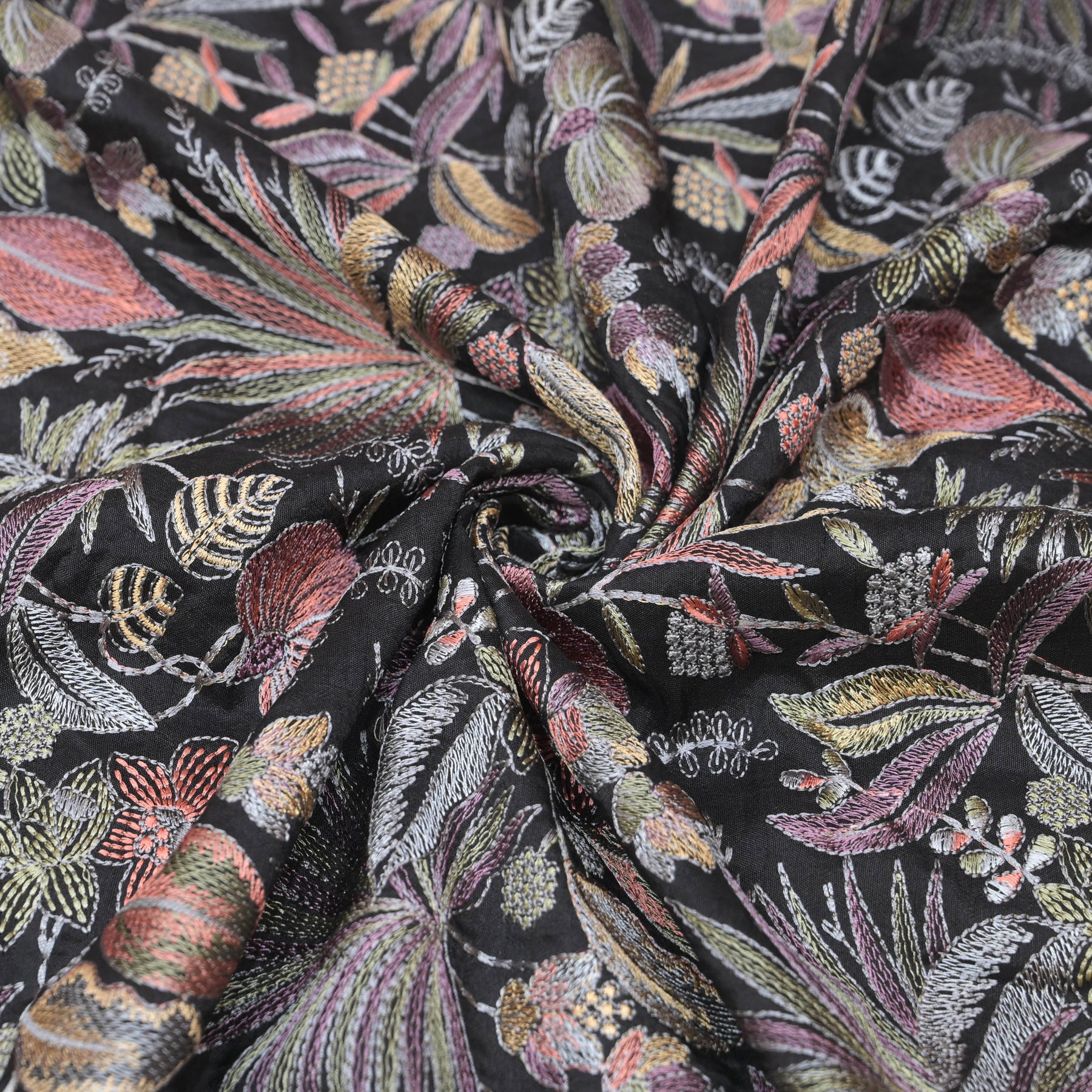 Experience understated elegance with our premium Bemberg Raw Silk fabric, beautifully enhanced with intricate pastel floral embroidery. The soft, matte texture of raw silk paired with the smooth finish of Bemberg creates a luxurious hand feel and graceful drape.