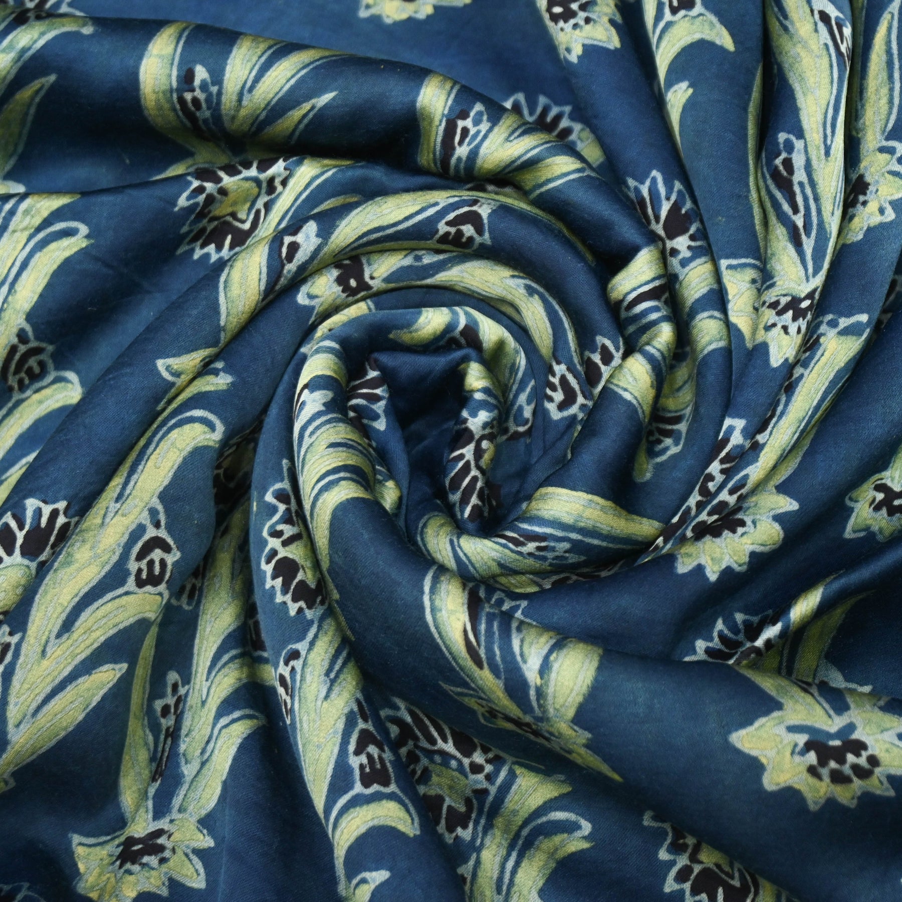 Product name: Deep indigo Blue Ā Modal Satin Fabric in Digital Print.Ā