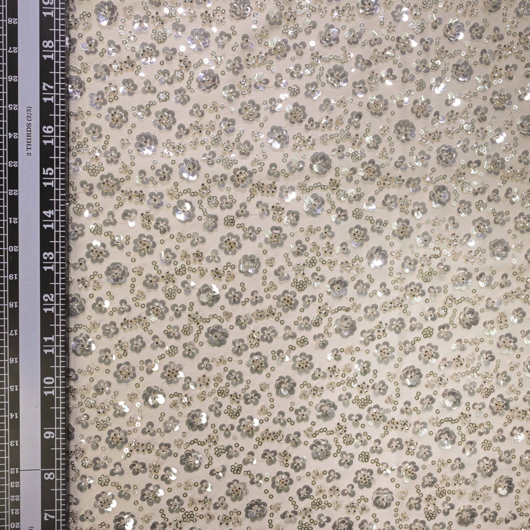Champagne Beige Floral Sequin Embroidered Net Fabric
