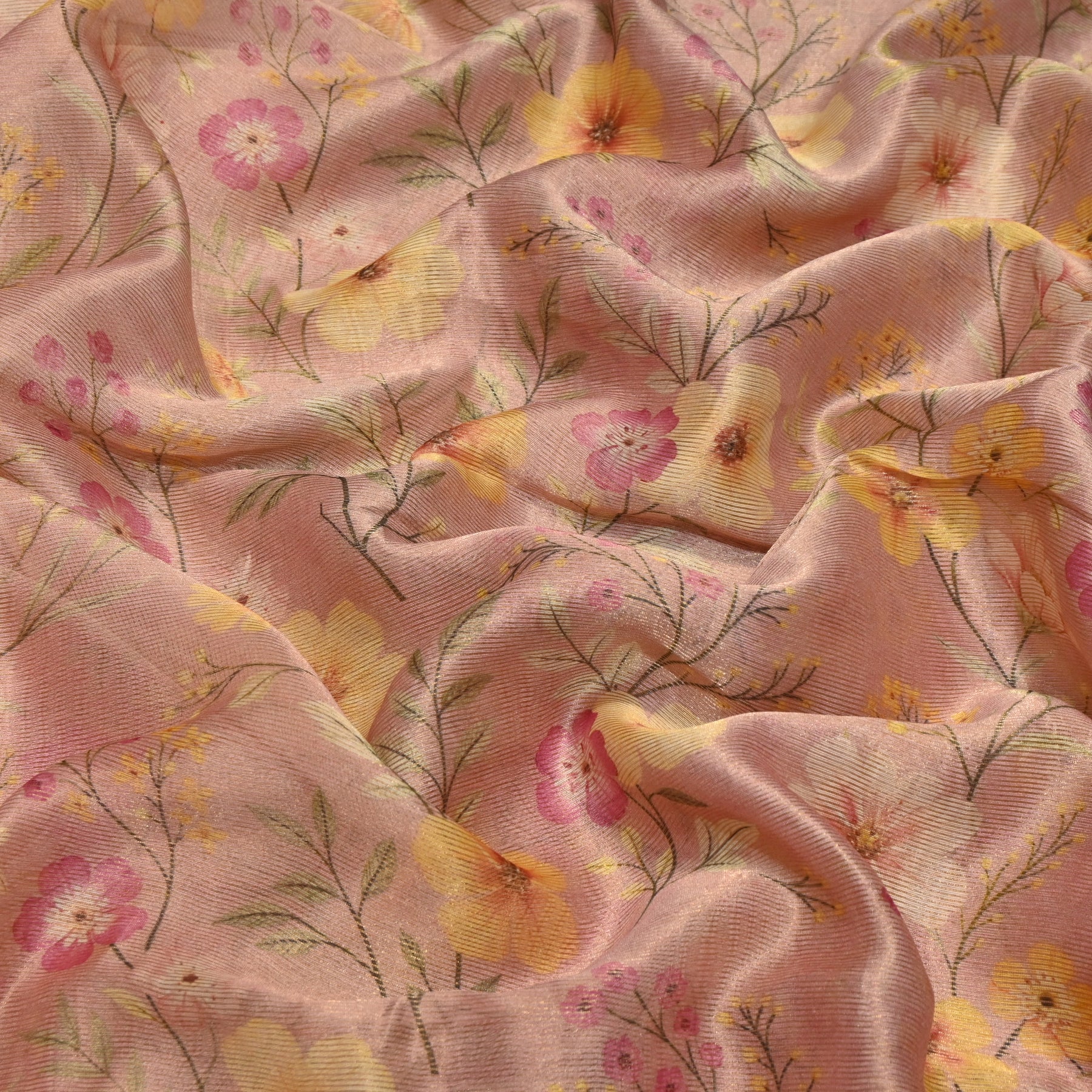 Floral Tissue Digital Print Zari Stripe Designer Fabric