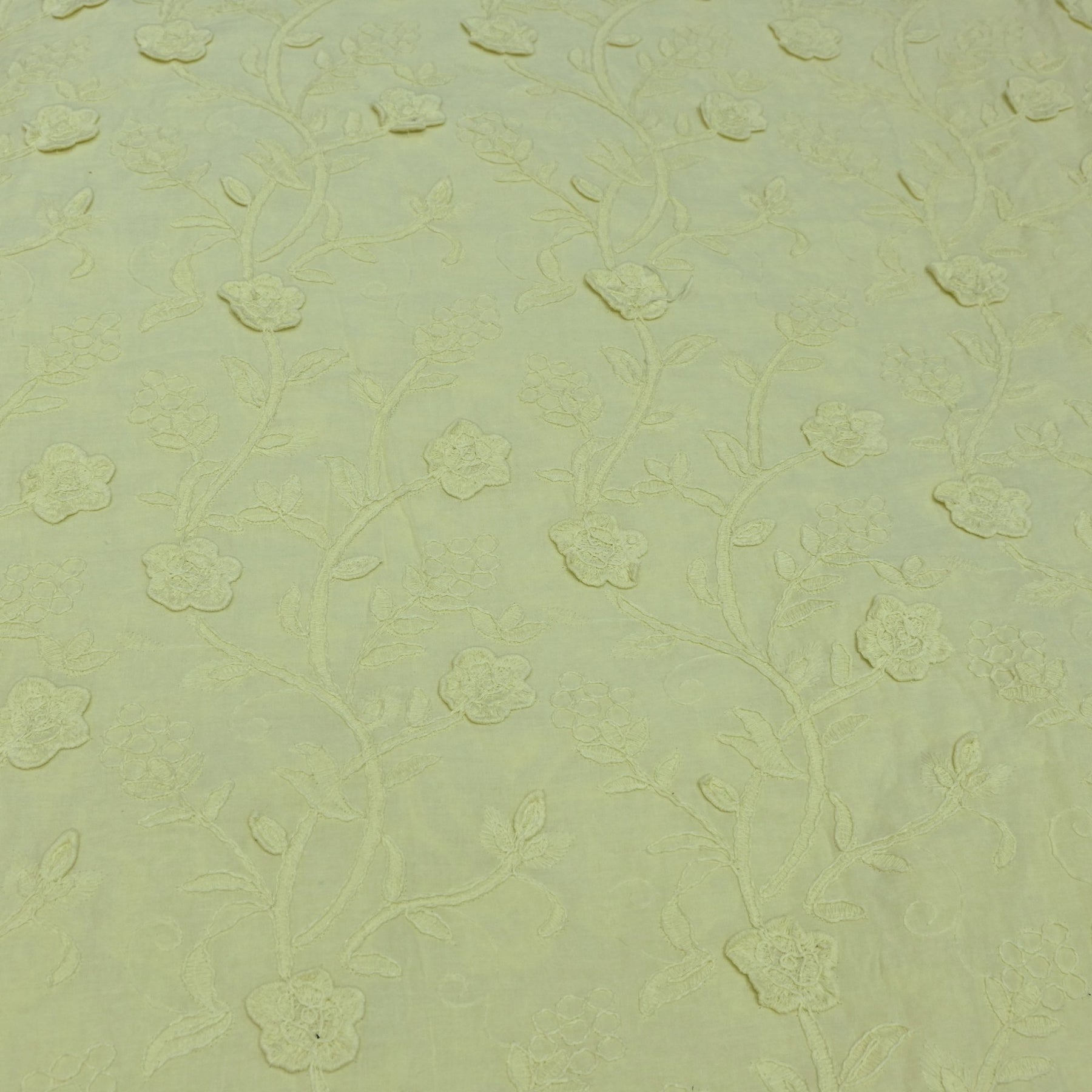Lemon Color Pure Cotton Floral Thread Embroidery Fabric