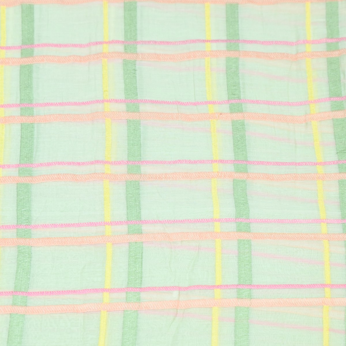 Lime Green Color Mul Chanderi Thread Embroidery Fabric β Soft Lightweight Designer Fabric-V2189C-3
