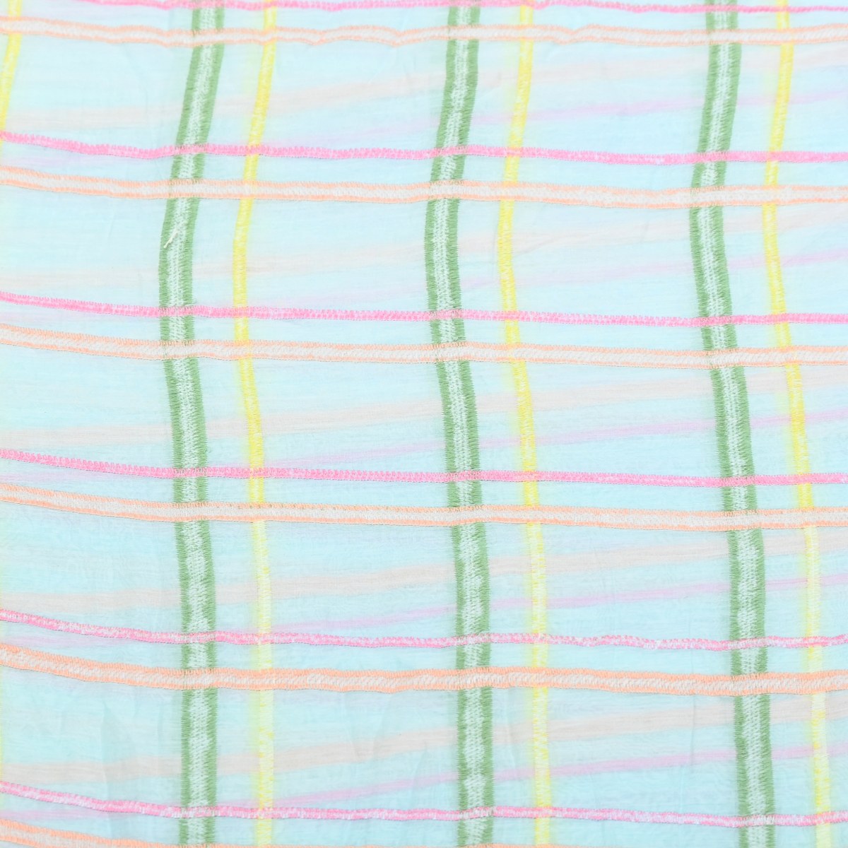 Sky Blye Color Mul Chanderi Thread Embroidery Fabric – Soft Lightweight Designer Fabric-V2189C-4