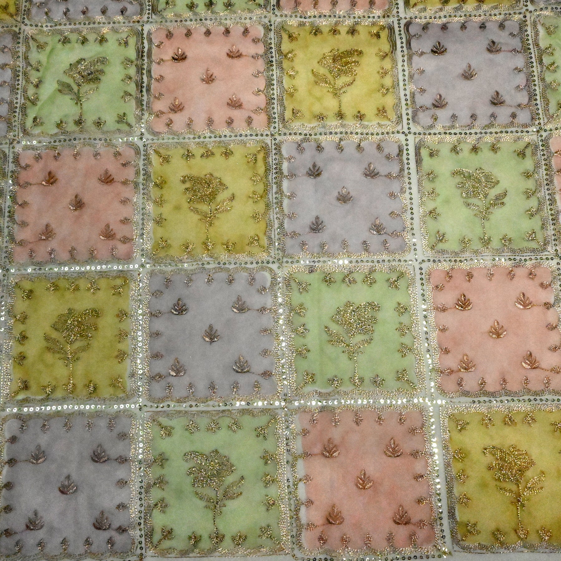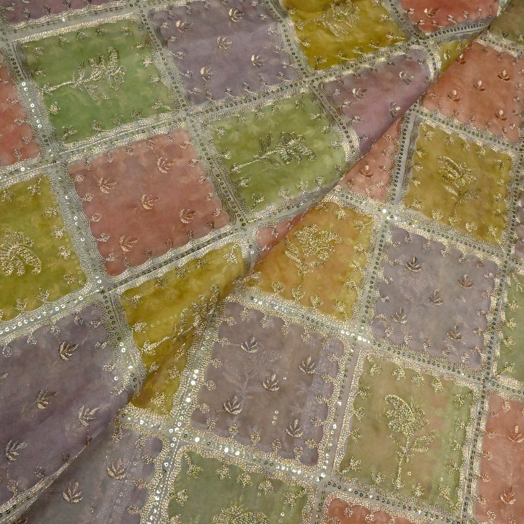 Product Name: Organza Position Print with Zari & Sequins Embroidery Fabric