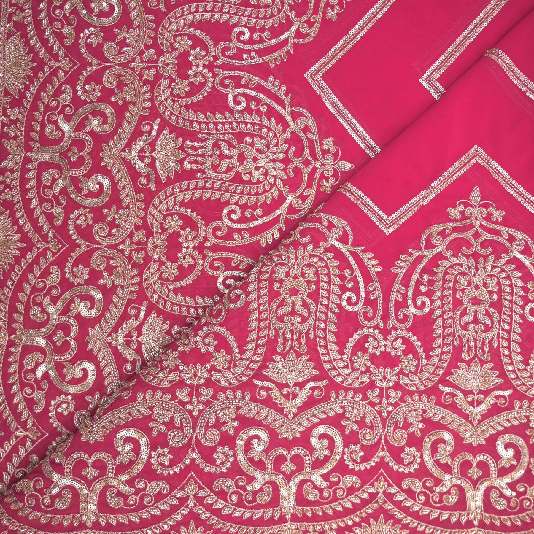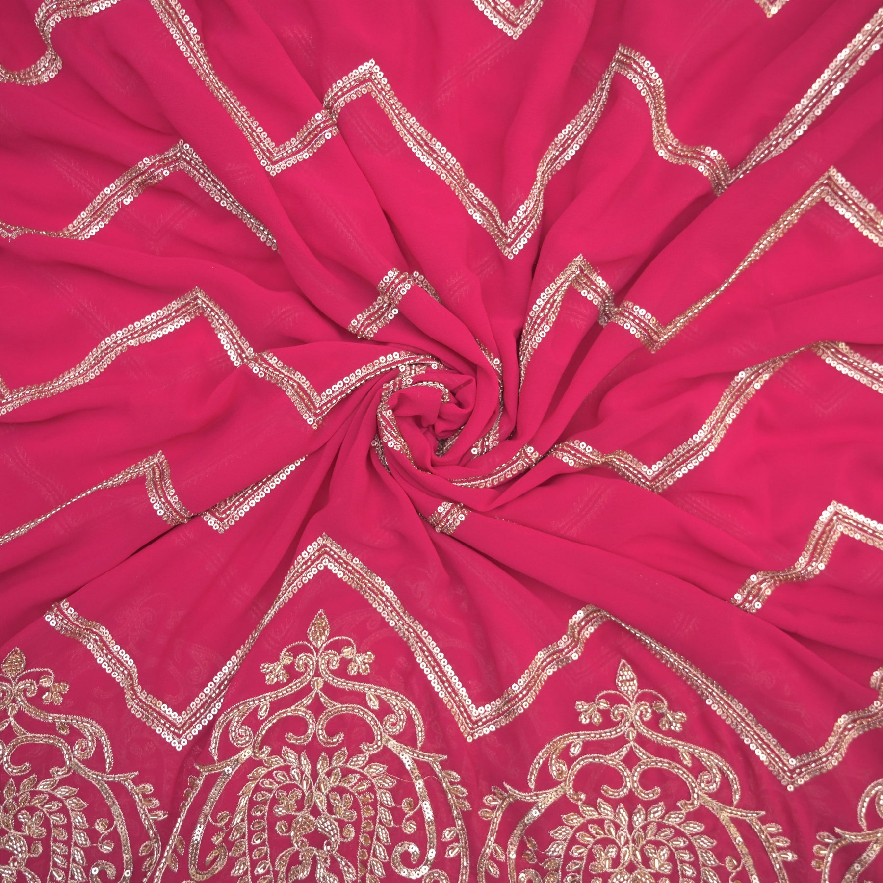 Product Name: Pink Georgette Fabric with Gota Patti & Sequins Embroidery