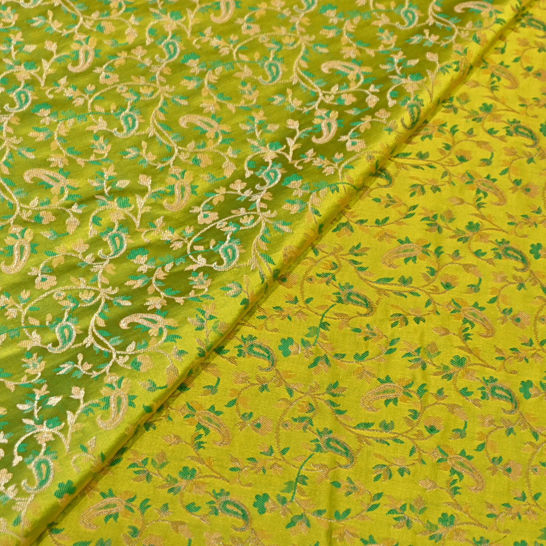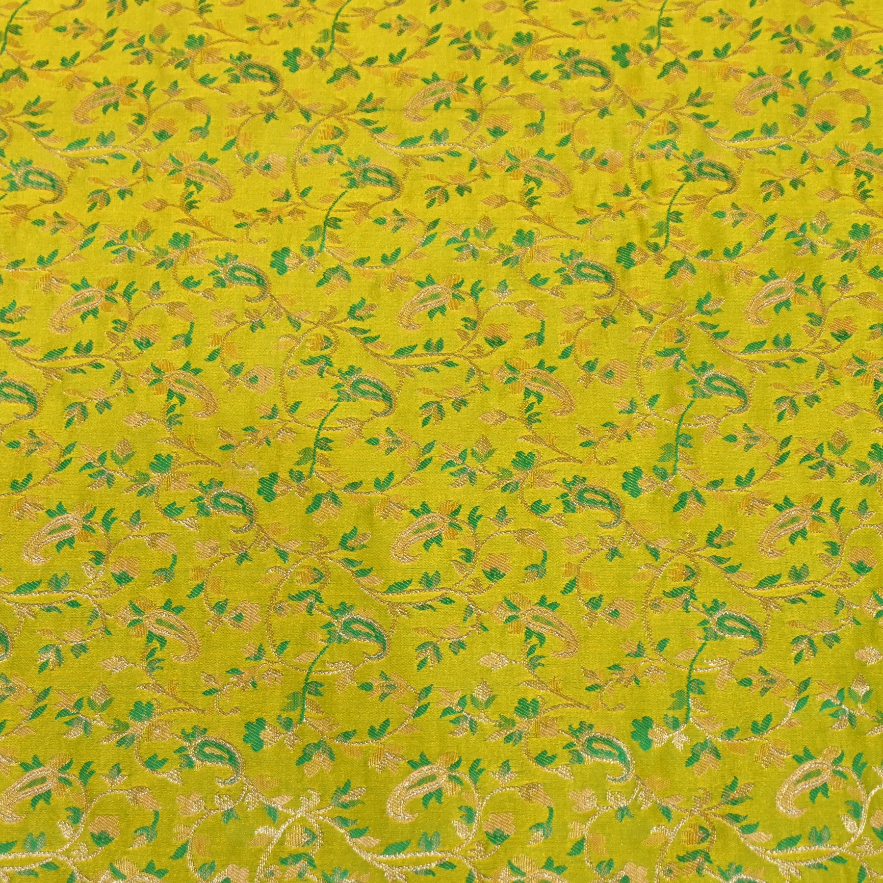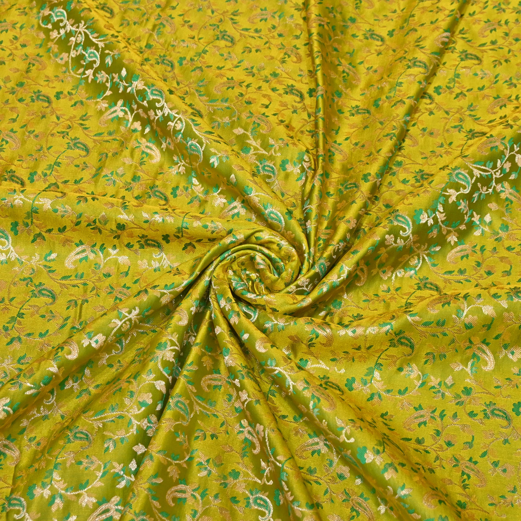 Product Name: Yellow-Green Satin Jamdani Brocade Fabric