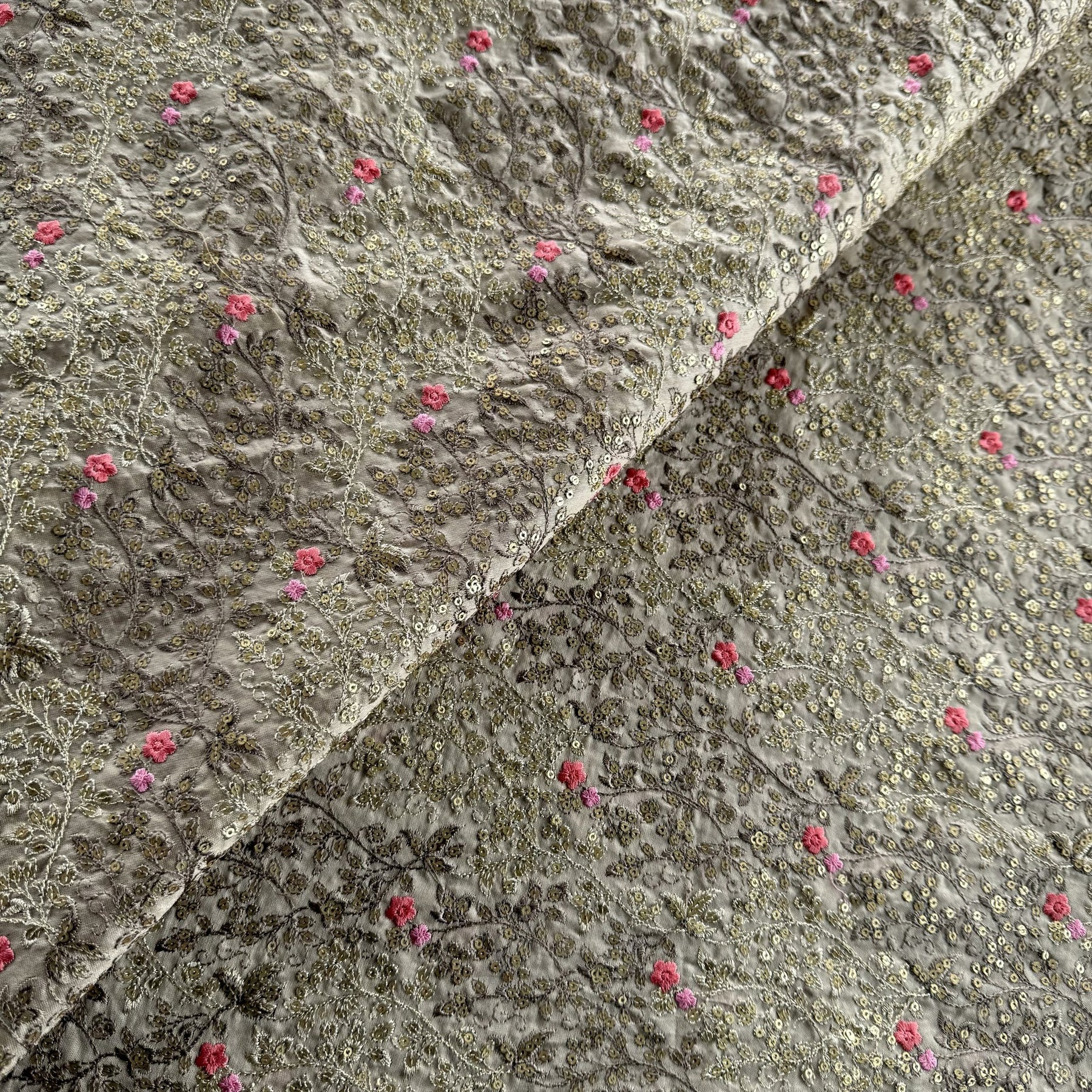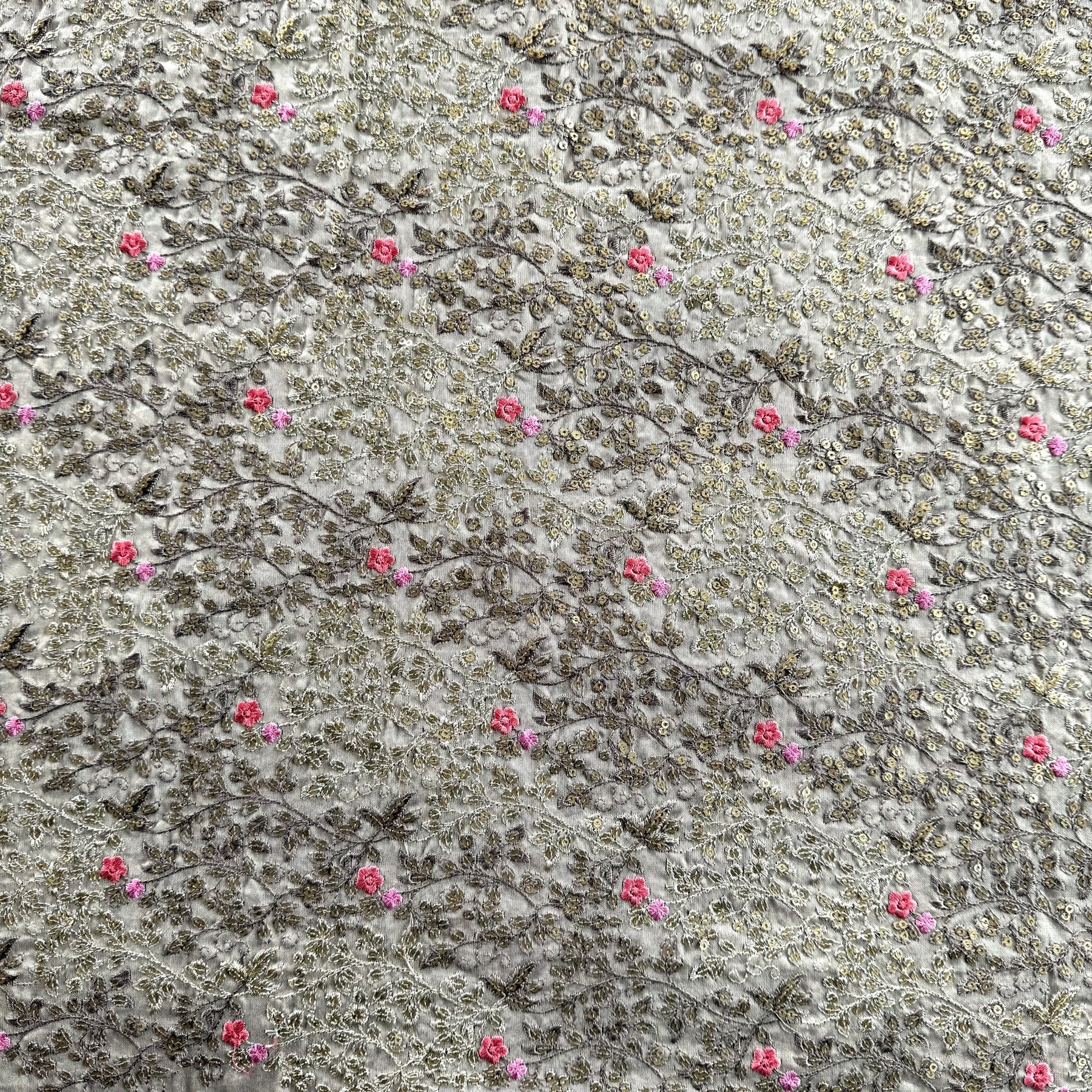 • Product Name: Silk Chanderi Thread Sequence Embroidery Fabric