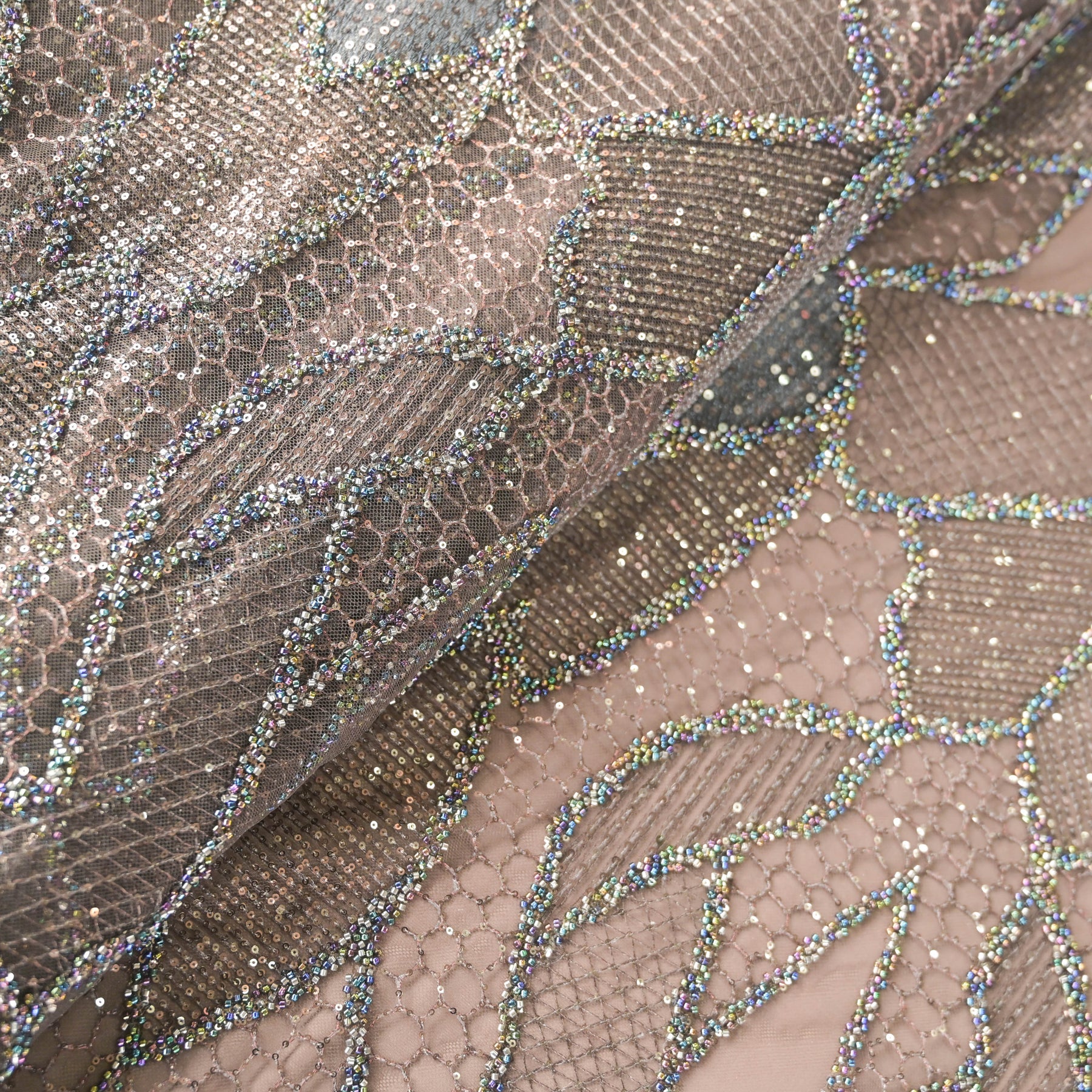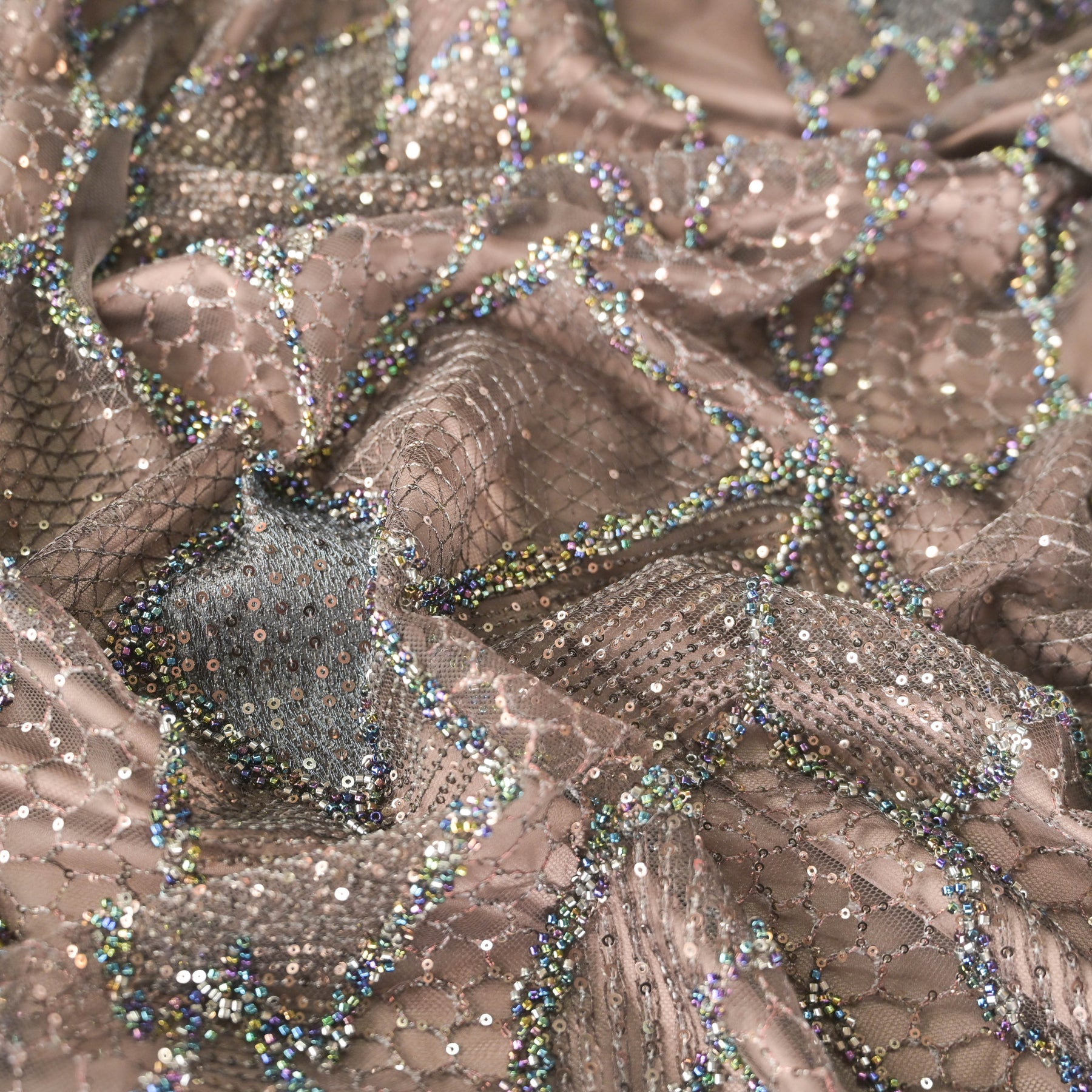Crafted on high-quality imported net, it provides a graceful fall with a semi-sheer finish, making it perfect for statement silhouettes. The evenly spread sequins create a rich, luxurious texture without compromising comfort.