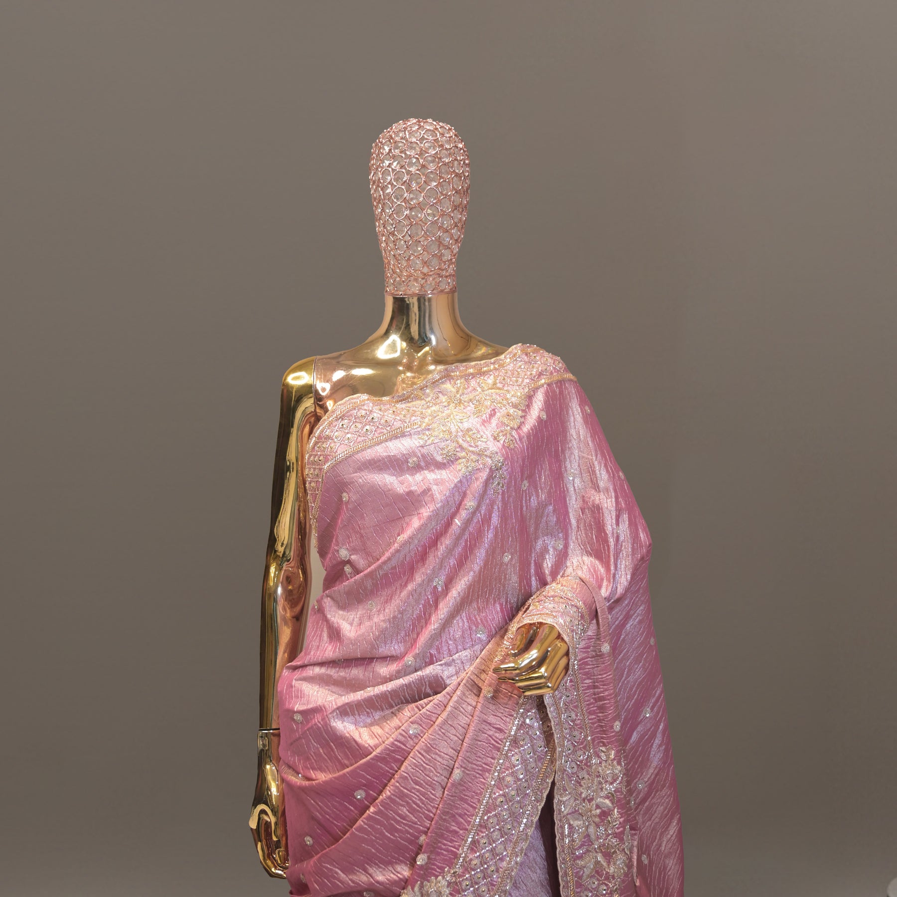 Soft Pink Crush Tissue Saree with Handwork Embroidery