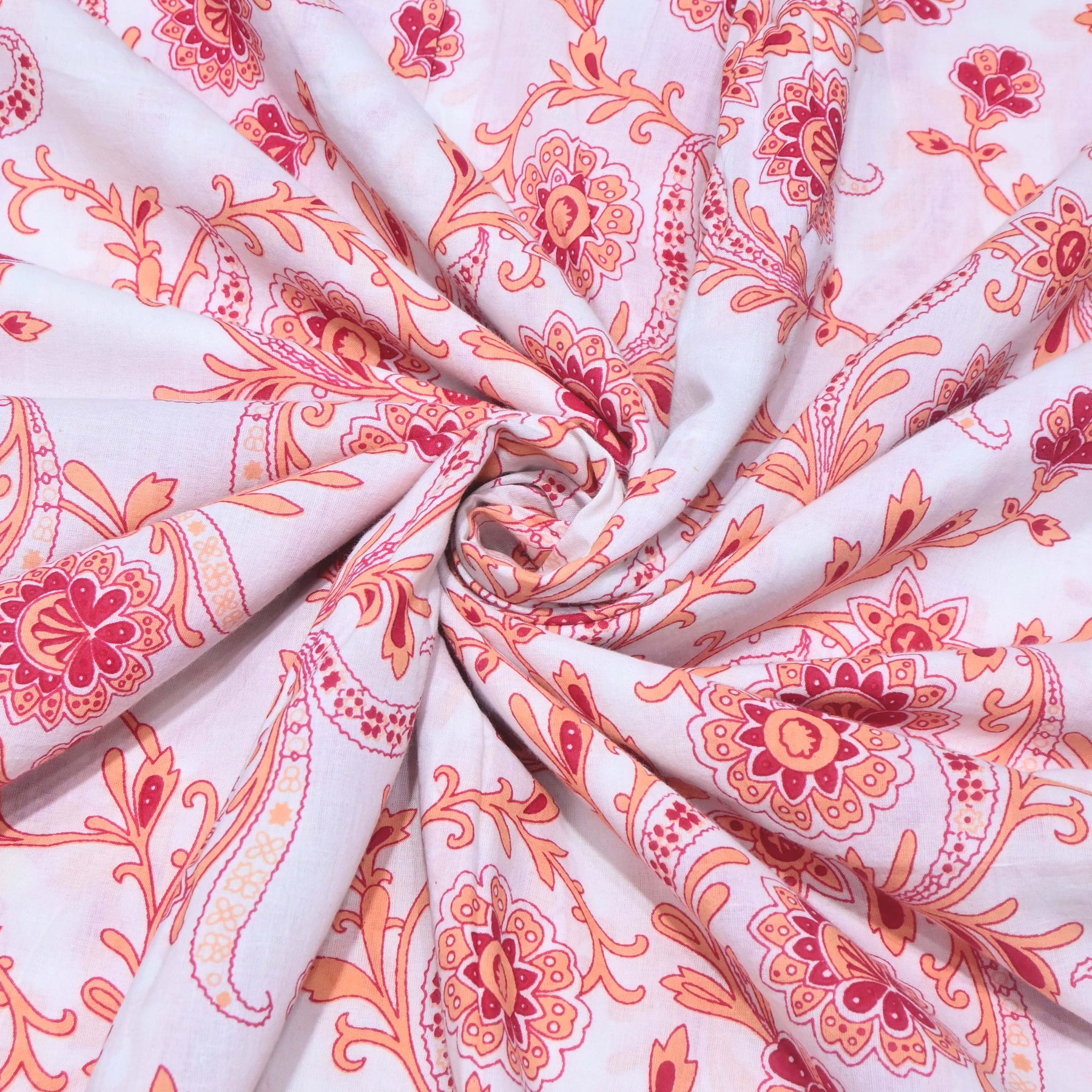 The detailed all-over print blends traditional charm with contemporary styling, perfect for ethnic and fusion garments.