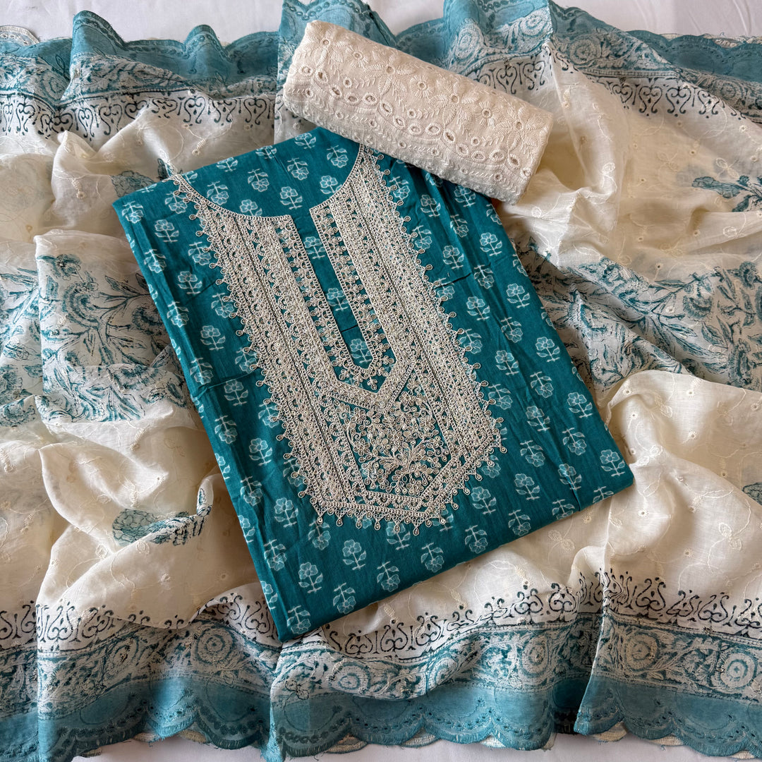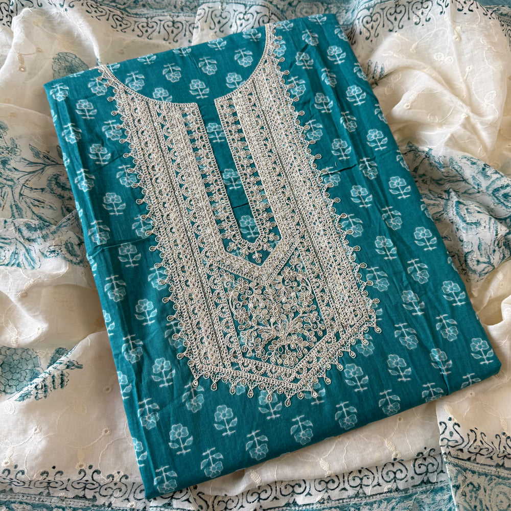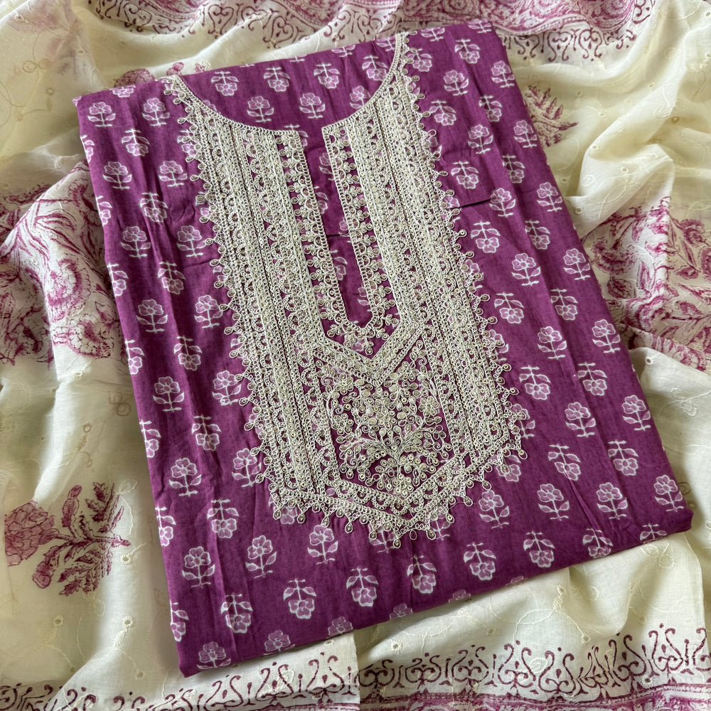 Printed Cotton Aari & Sequins Work Unstitched Suit Set