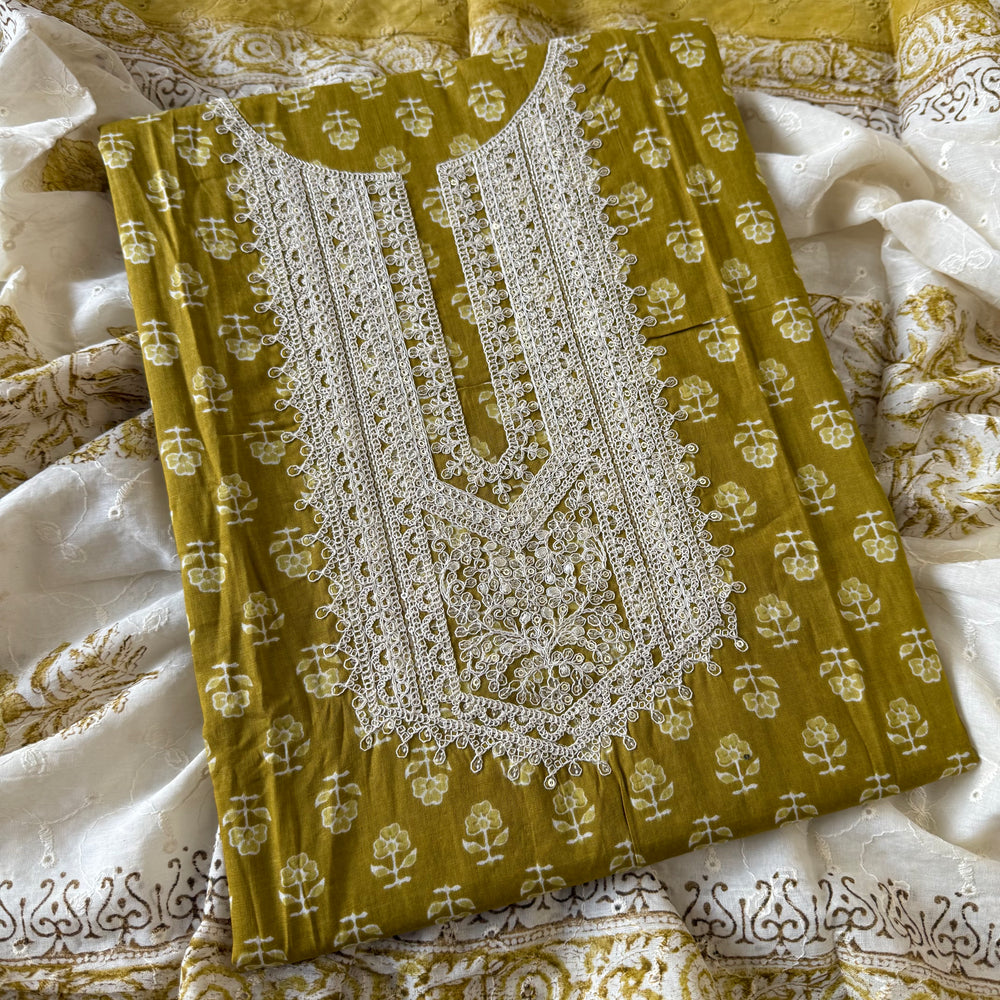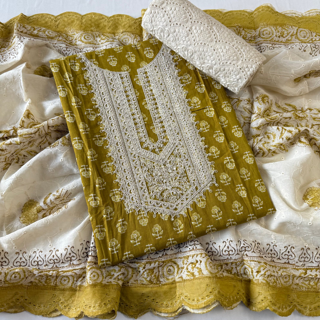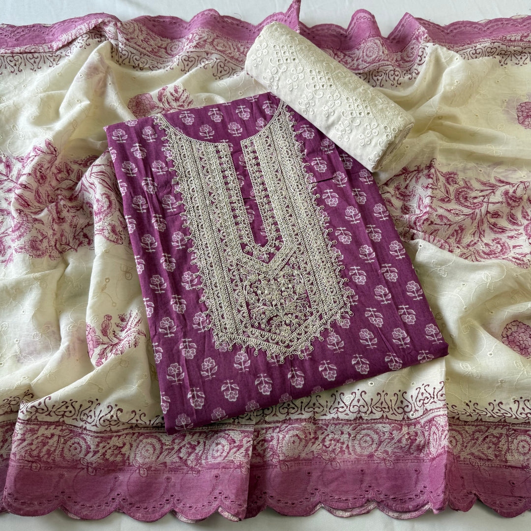 Printed Cotton Aari & Sequins Work Unstitched Suit Set