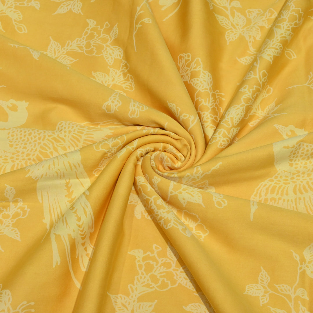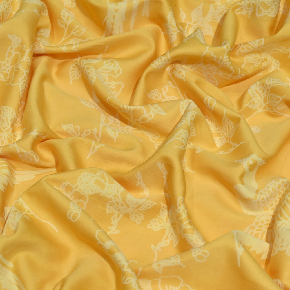 Yellow Mul Chanderi Floral Thread Moti & Sequins Embroidery Fabric