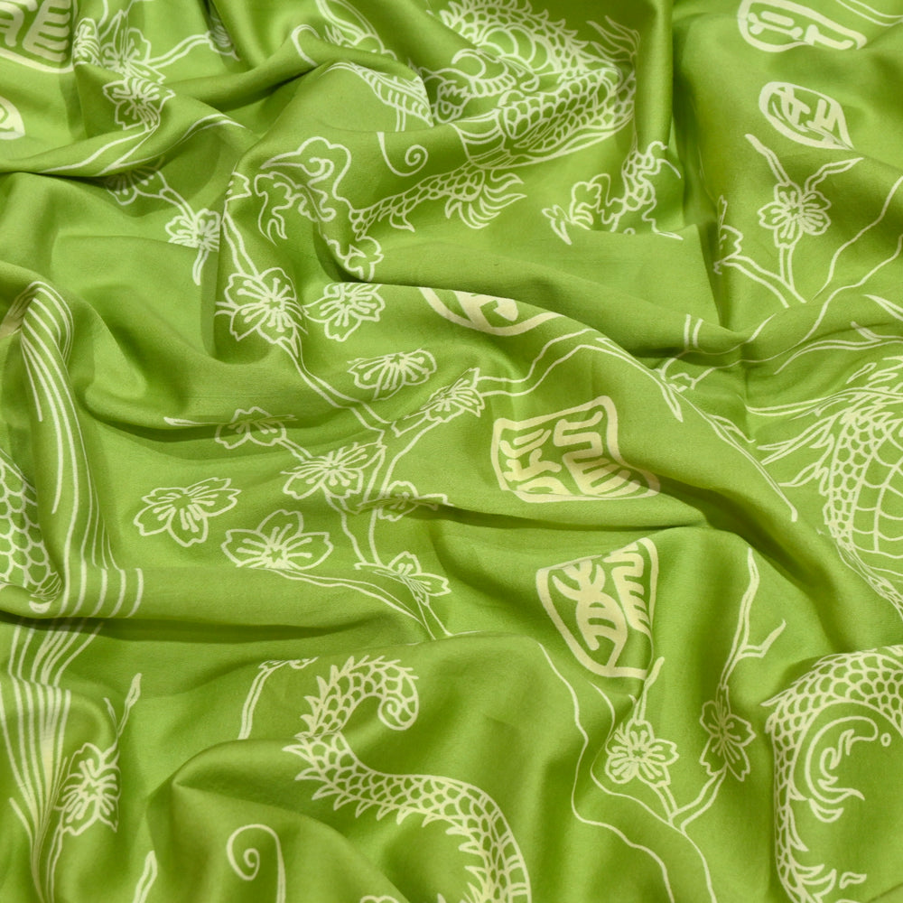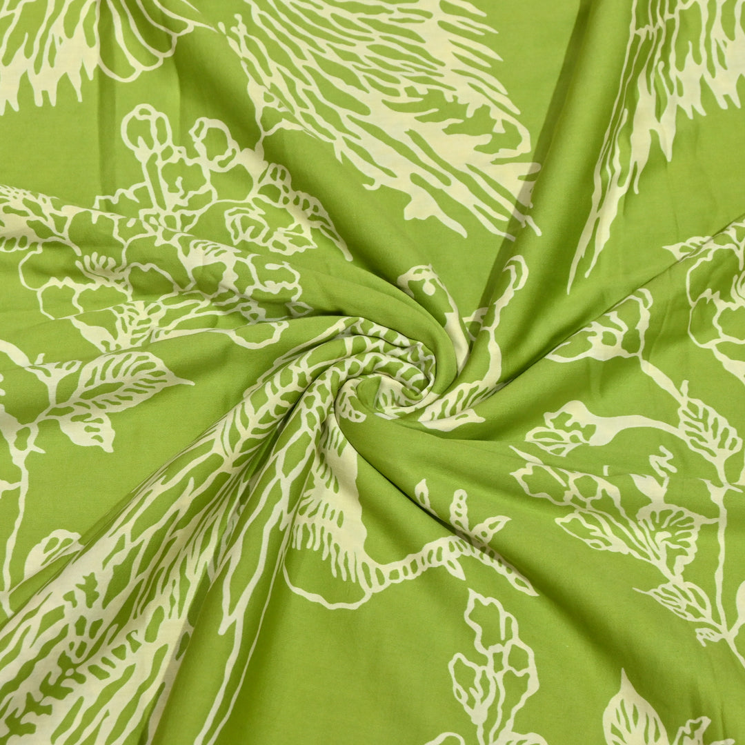 Pista Green Mul Chanderi Floral Thread Moti & Sequins Embroidery Fabric