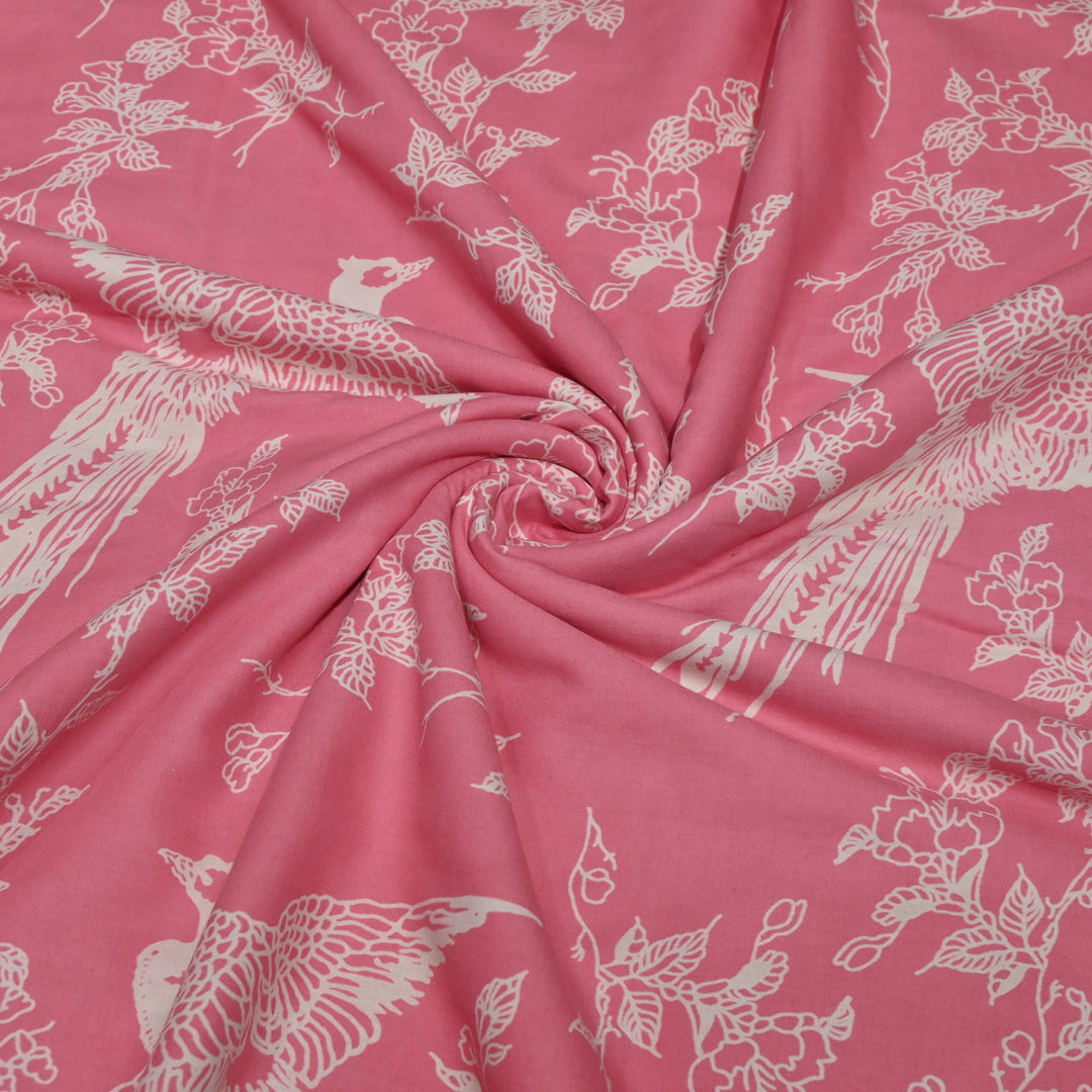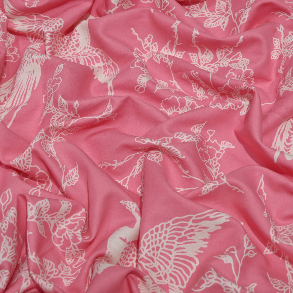 Pink Mul Chanderi Floral Thread Moti & Sequins Embroidery Fabric
