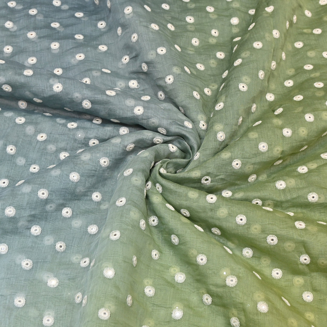 Shaded Mul Chanderi Thread Buti with Mirror Embroidery Fabric