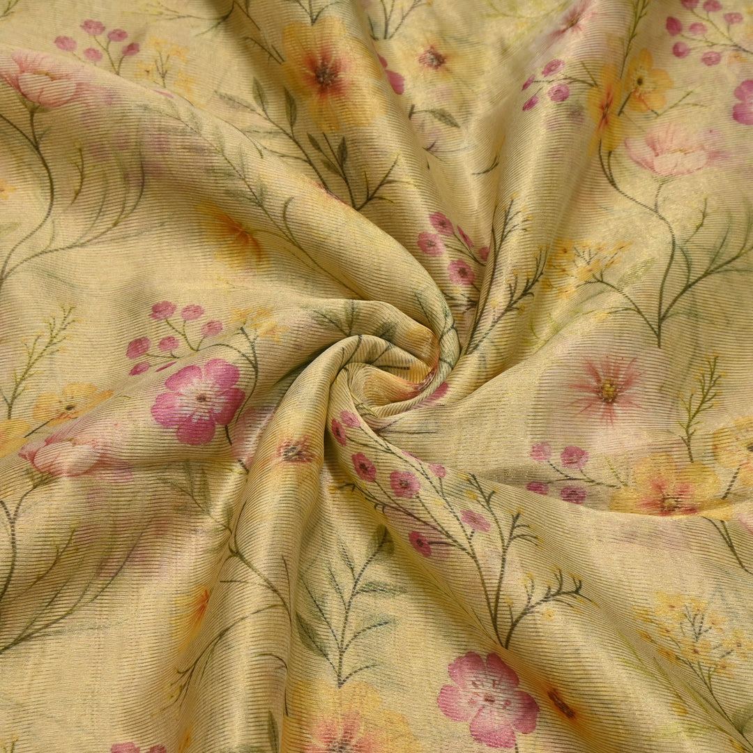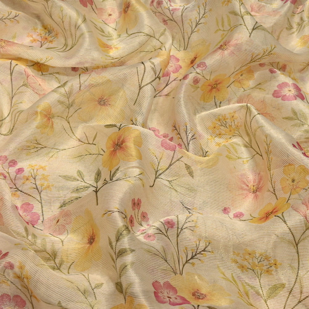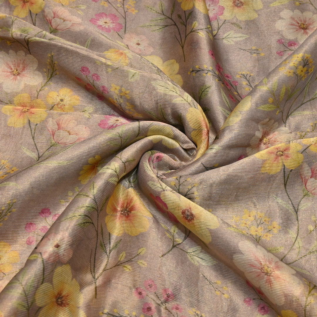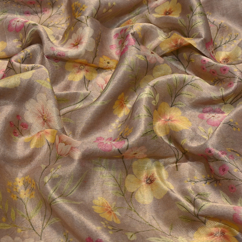 Floral Tissue Digital Print Zari Stripe Designer Fabric