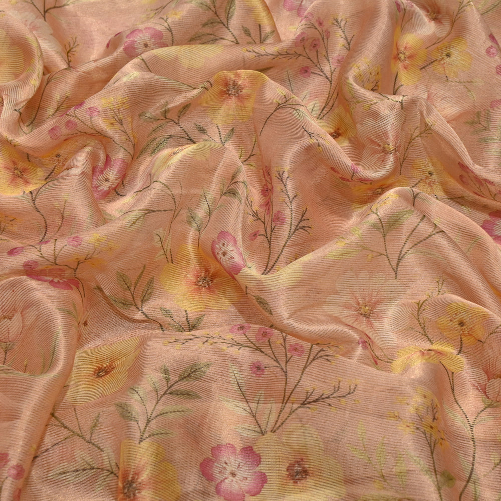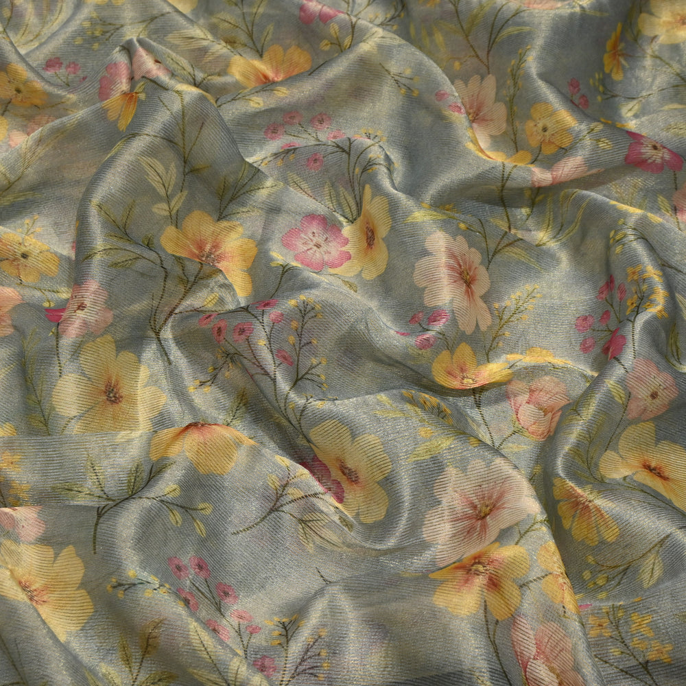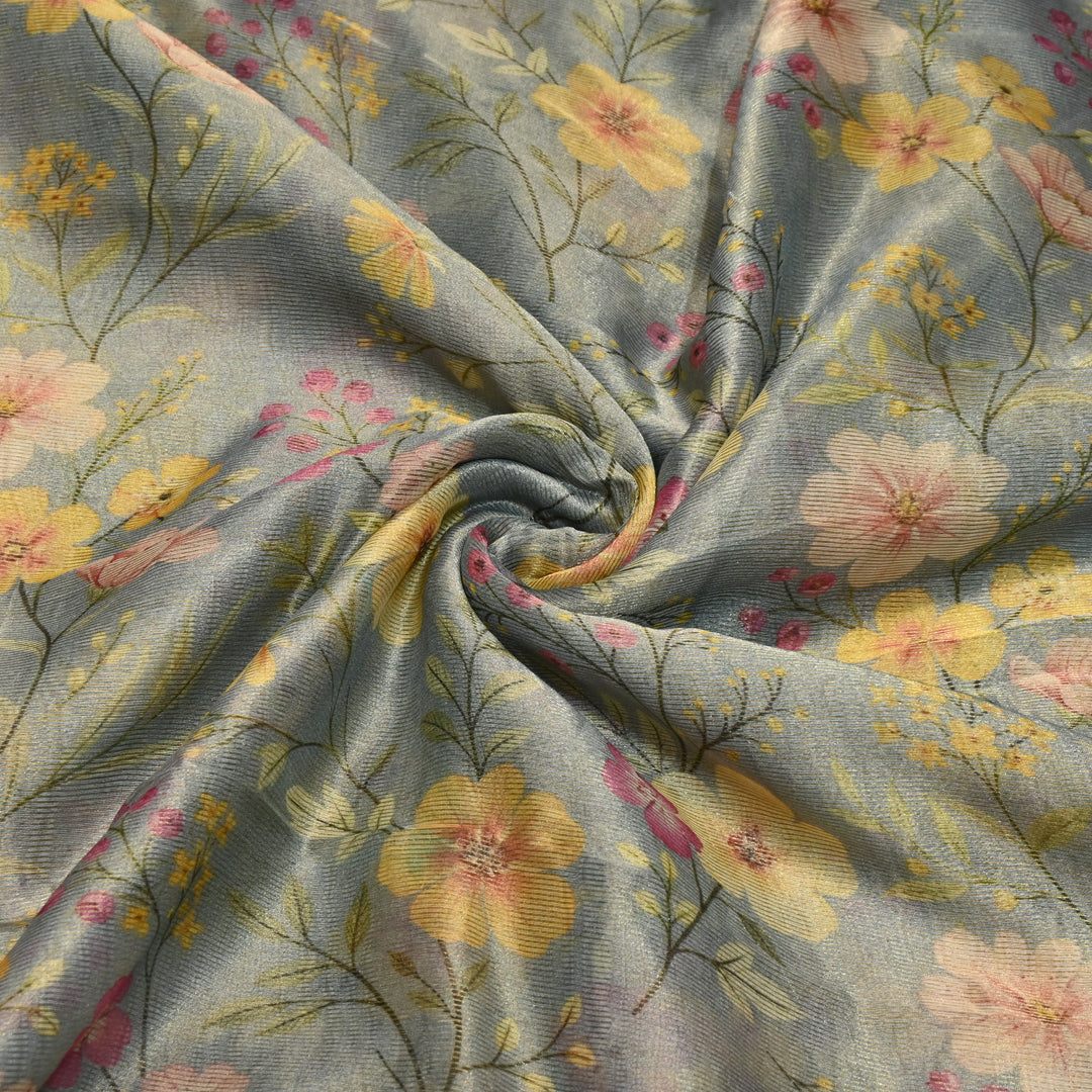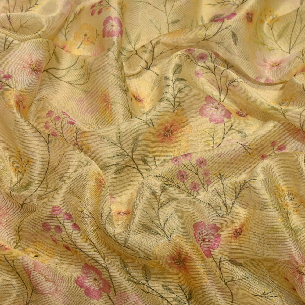 Floral Tissue Digital Print Zari Stripe Designer Fabric