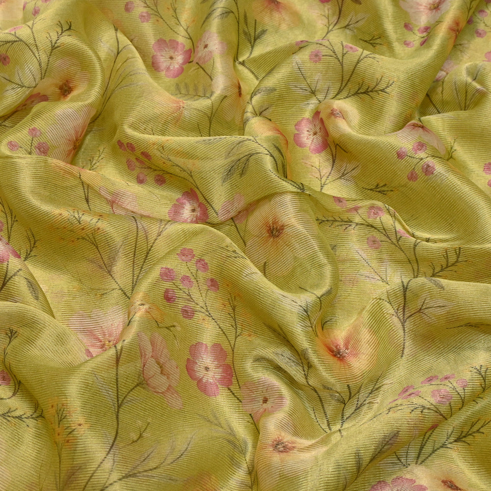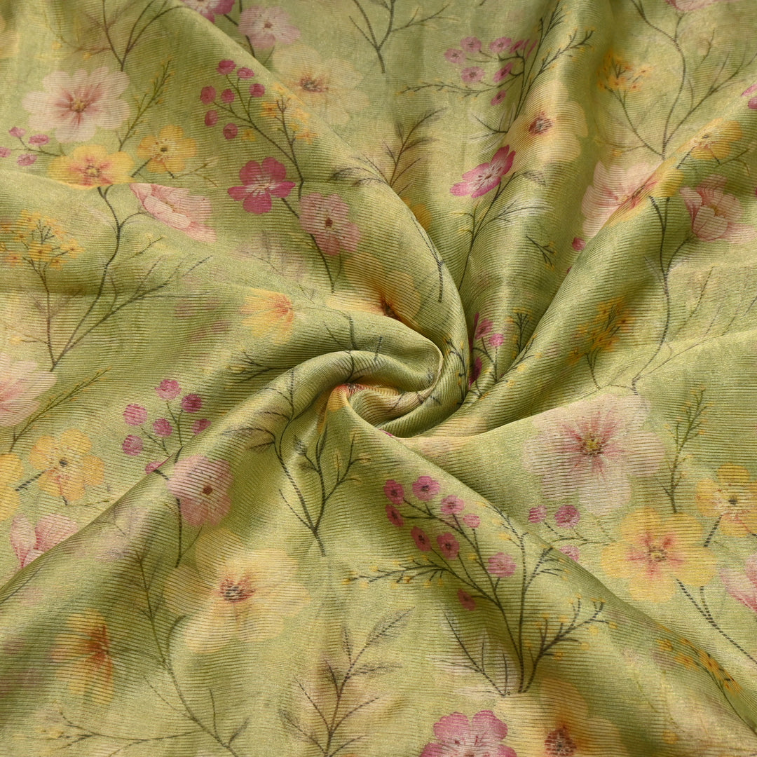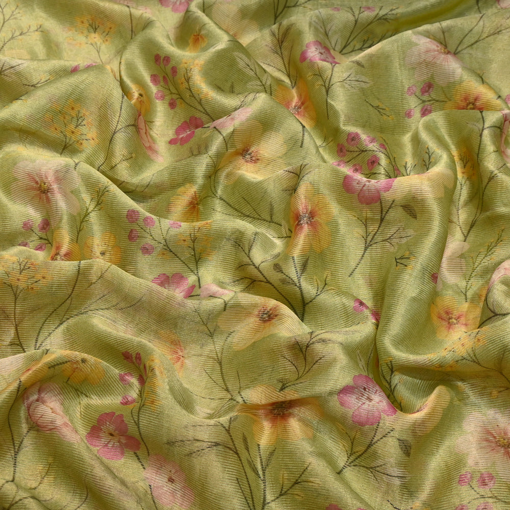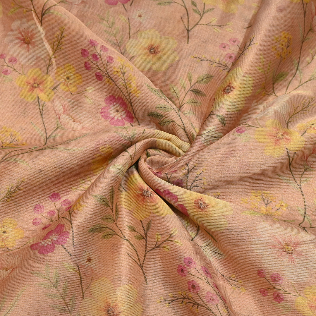 Floral Tissue Digital Print Zari Stripe Designer Fabric