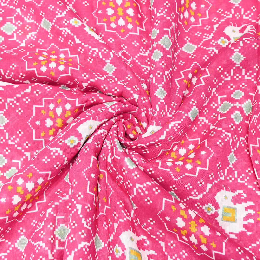 Rani Pink Ethnic Buta Floral Print Muslin Fabric