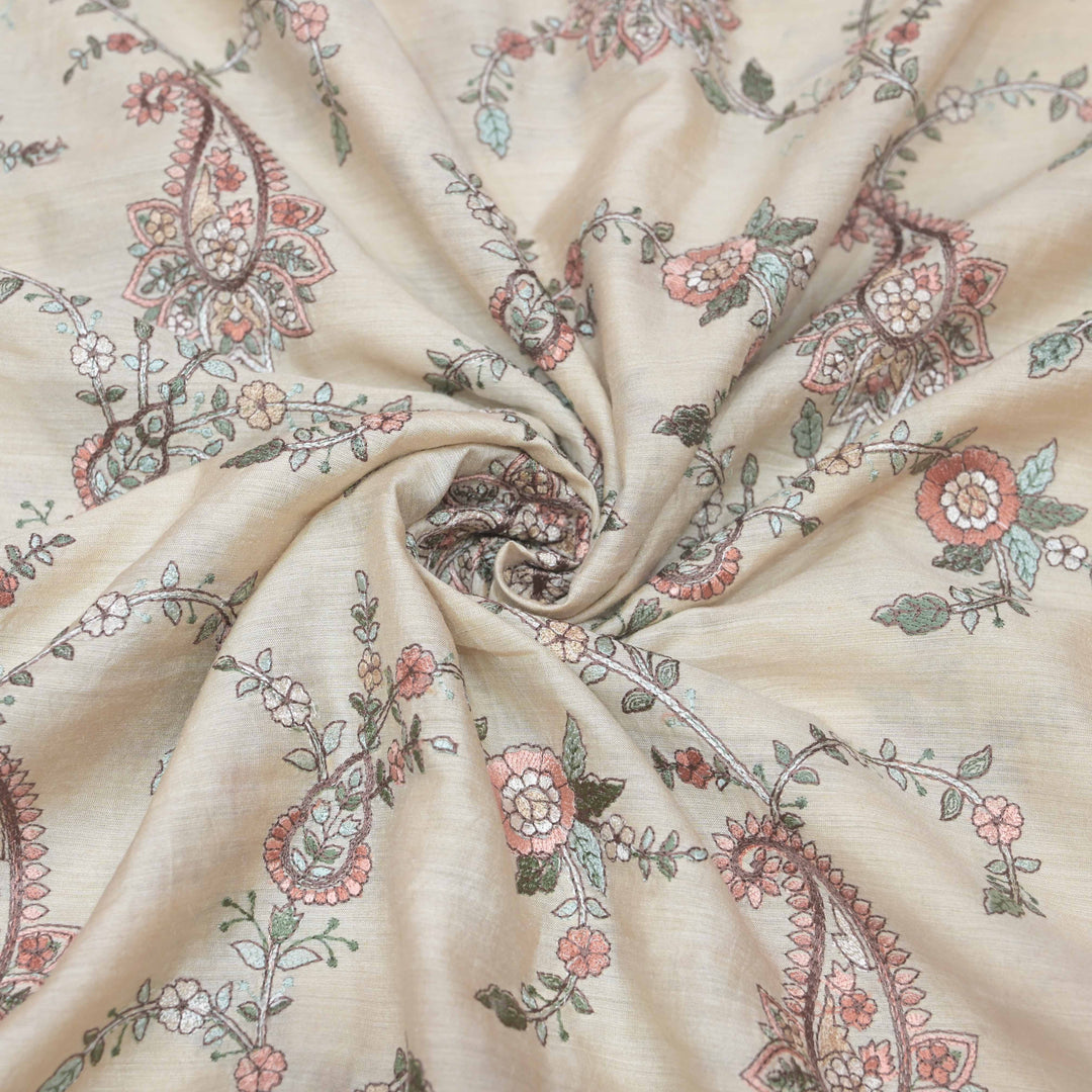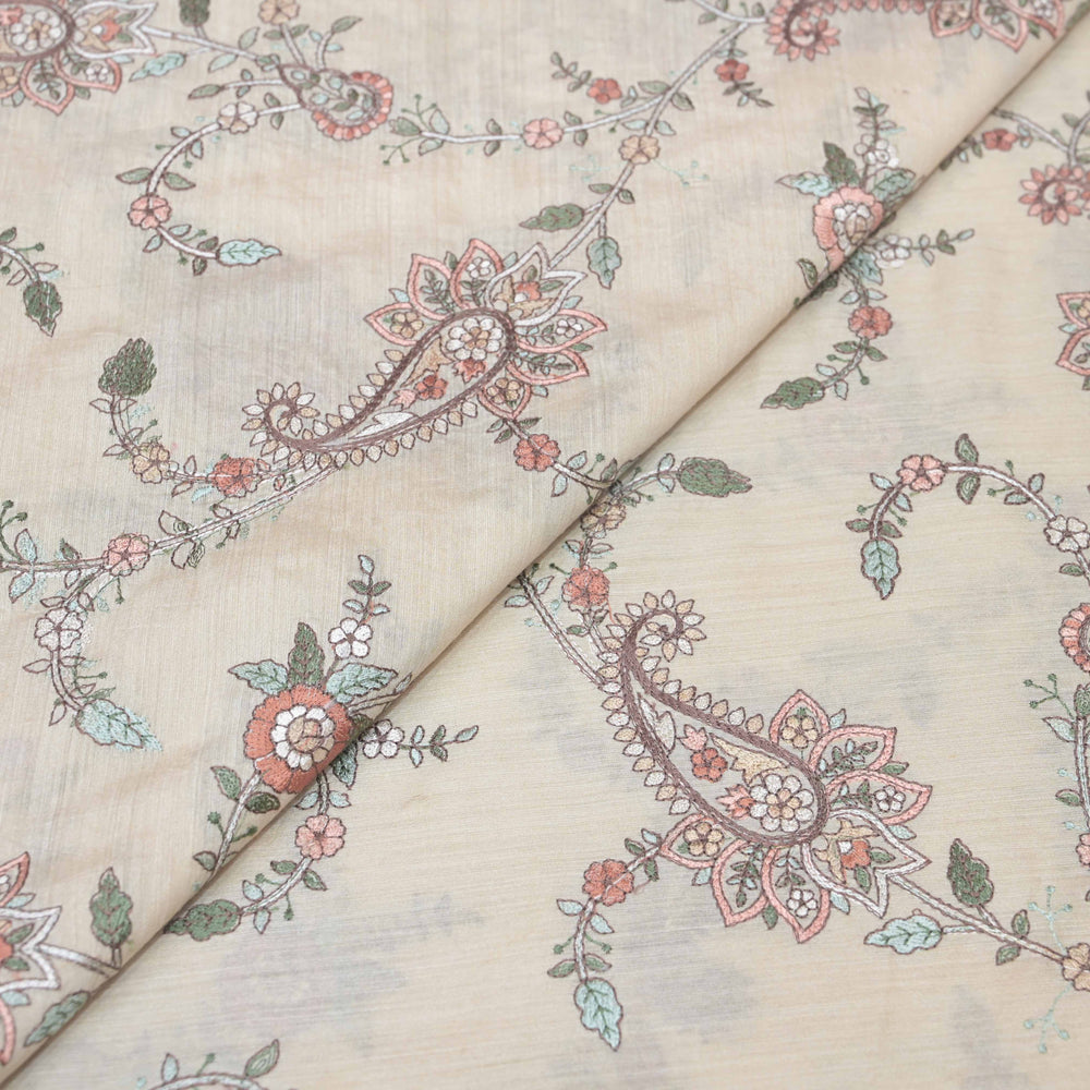 Cream White Moonga Silk with Thread Embroidery