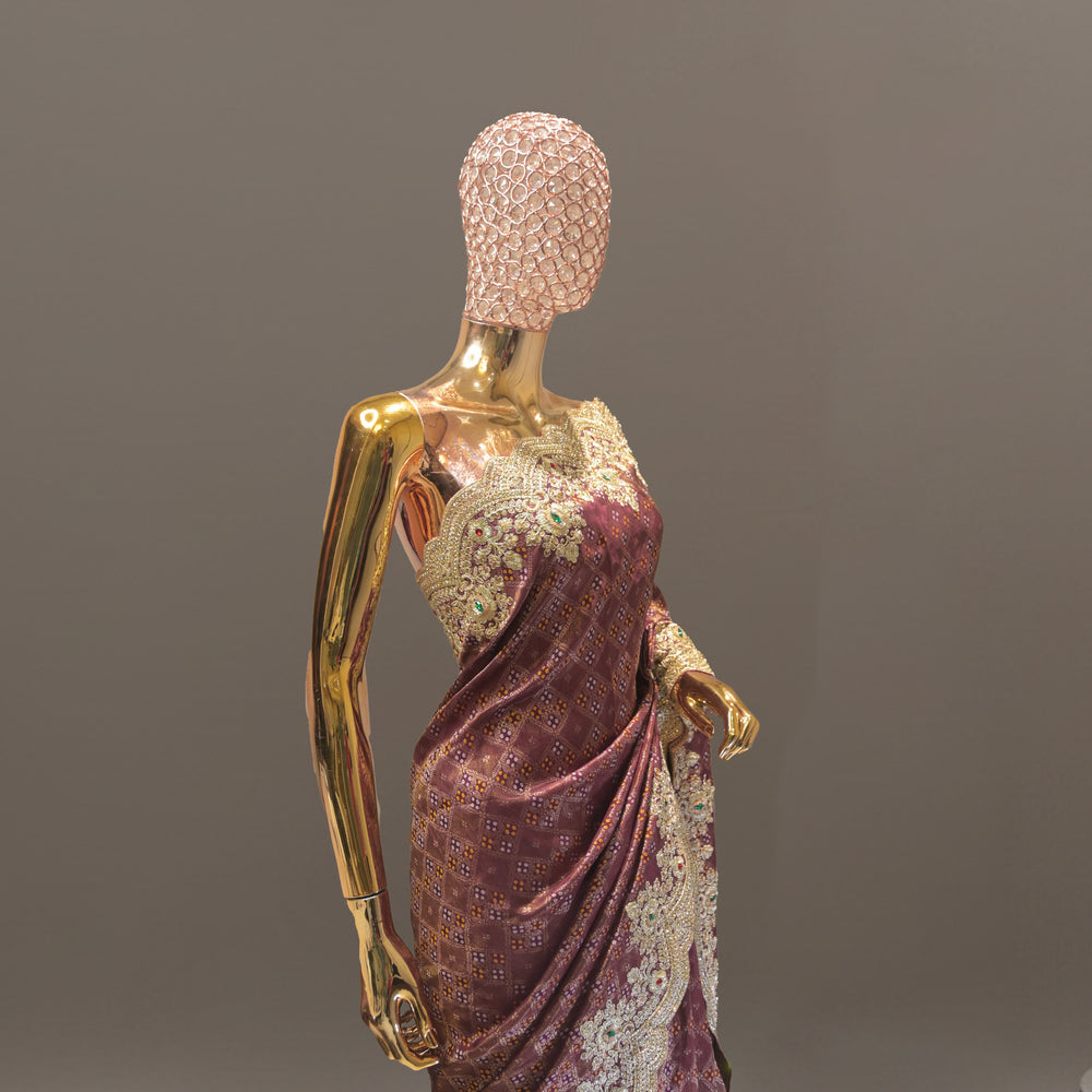 Purple Crepe Fabric with Zari & Mirrorwork Embroidery