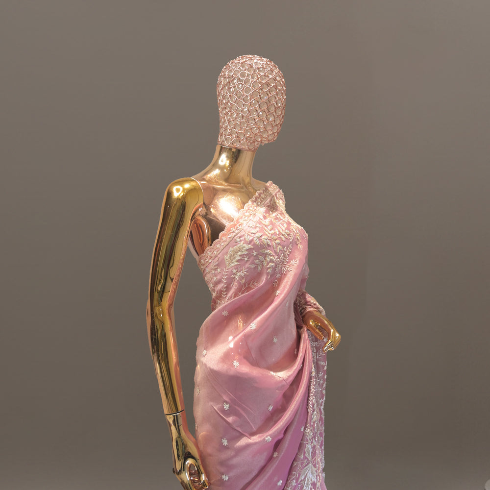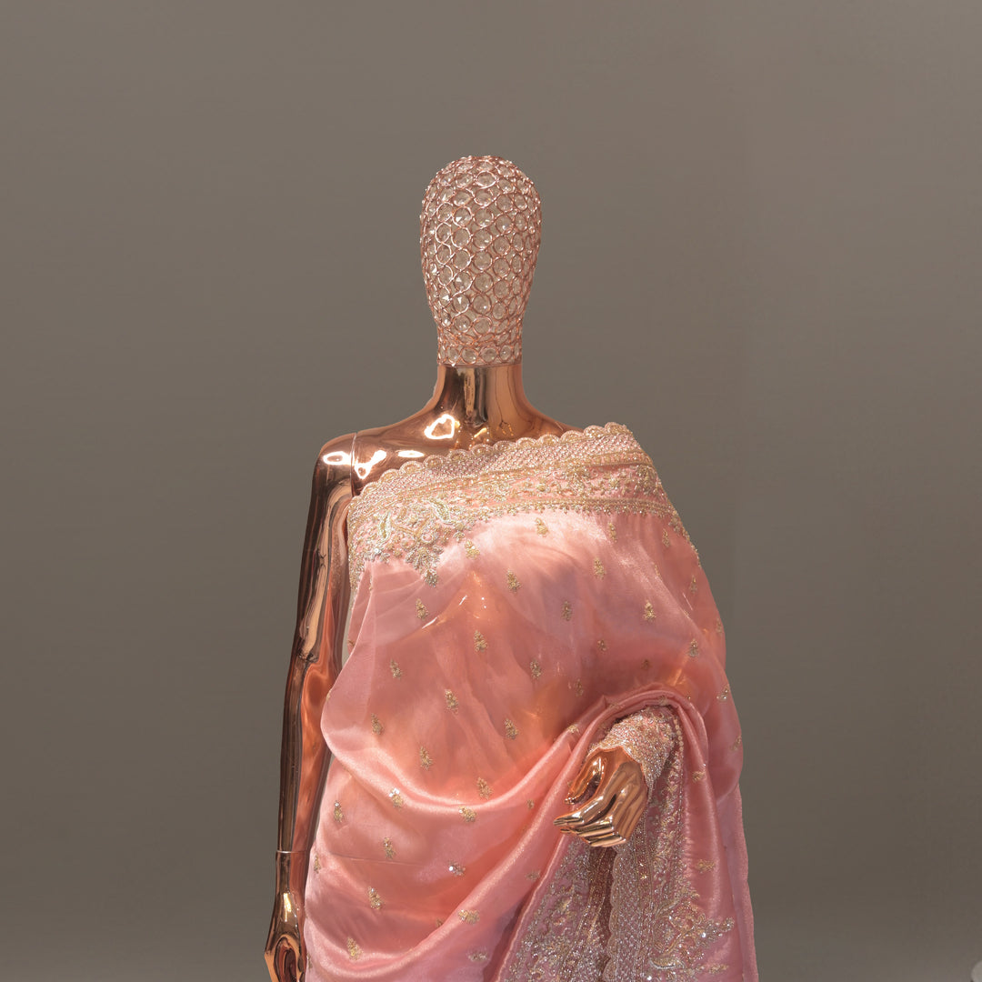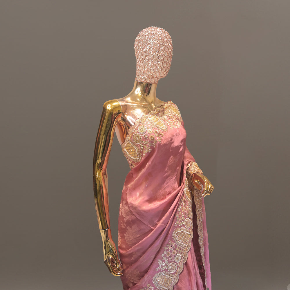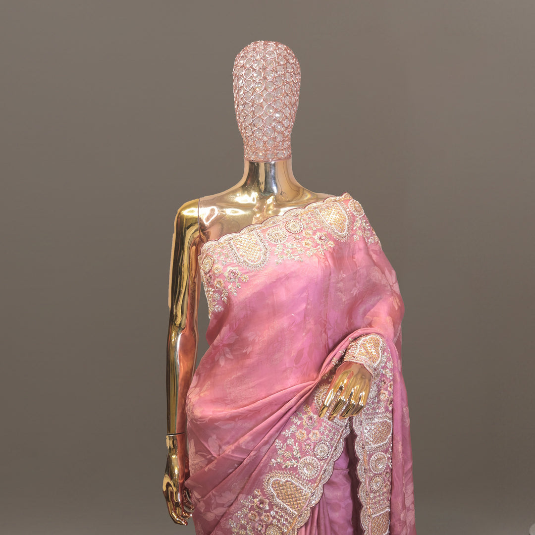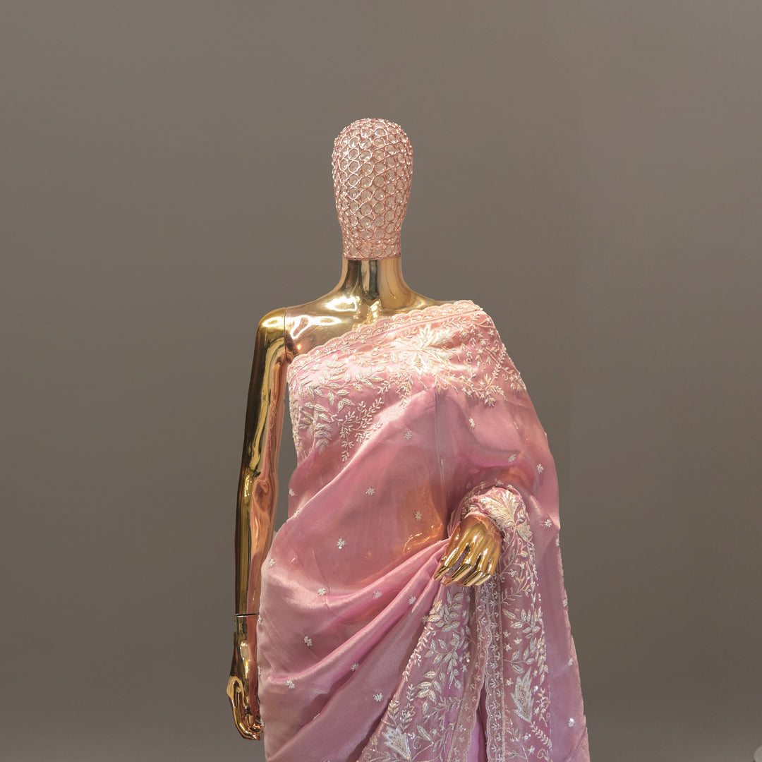 Soft Pink Crush Tissue Saree with Handwork Embroidery