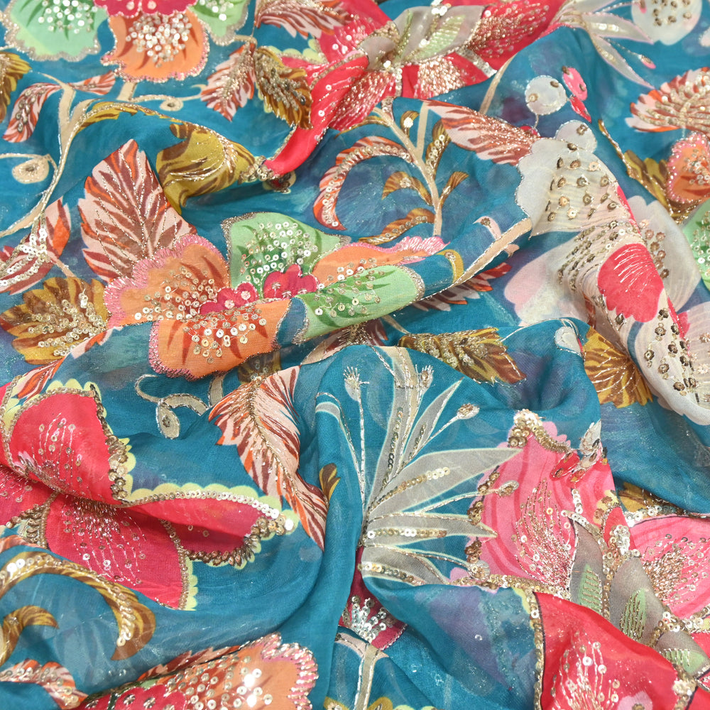 Organza Digital Print with Sequins Embroidery Fabric β Lightweight Designer Organza Fabric-0E1978-7