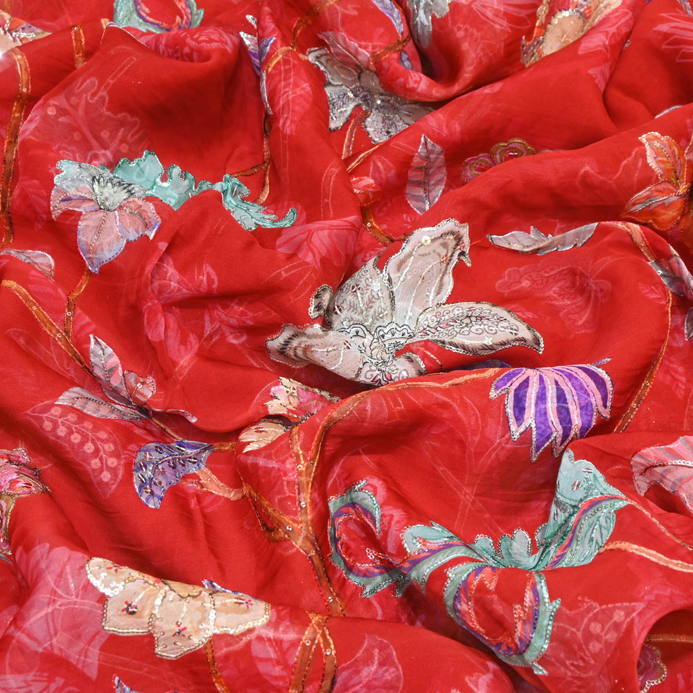 Organza Digital Print with Sequins Embroidery Fabric β Lightweight Designer Organza Fabric-0E1978-8