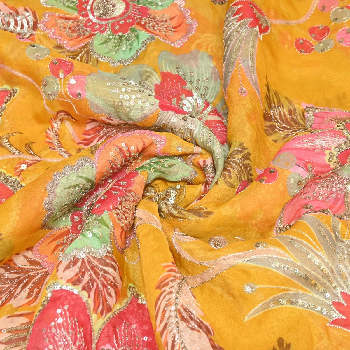 Viscose Organza Position Print Zari & Sequins Embroidery Fabric – Premium Designer Fabric-V1117C-3