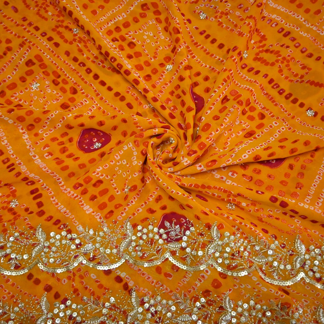Georgette Bandhani Print Moti Embroidery Fabrics
