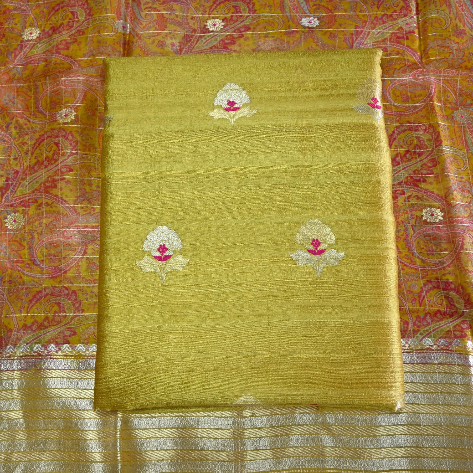 Elevate your festive style with this Pure Dupion Silk Unstitched Suit Set, featuring elegant Banarasi Zari Booti work that adds a rich traditional touch. The set includes a soft Organza Dupatta and a matching Dupion Silk bottom, offering a luxurious, coordinated look. Ideal for weddings, festive occasions, and parties.