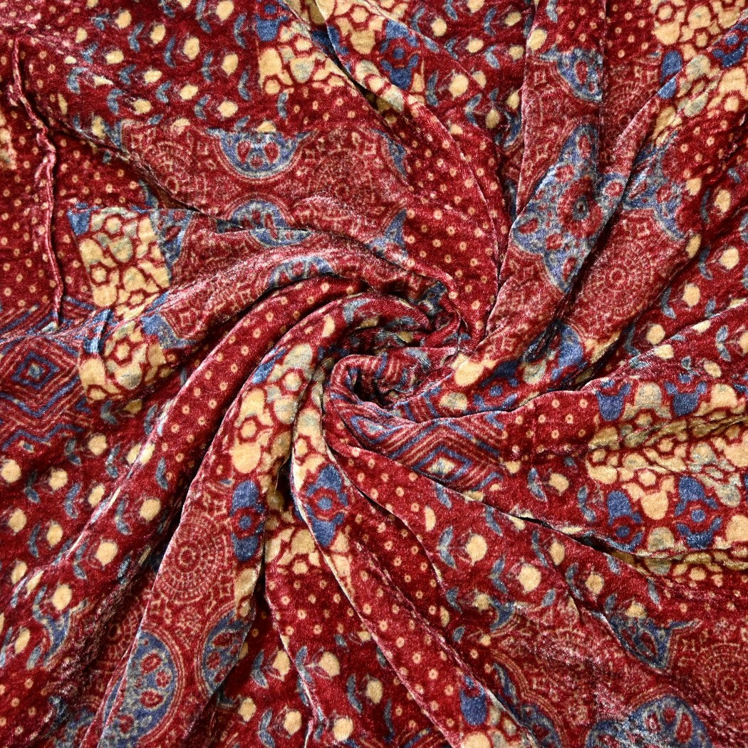 Experience luxury and elegance with our Pure Silk Velvet Digital Printe Fabric, crafted to bring a royal touch to your designs. The soft velvet base enhances comfort and shine, while the intricate Digital prints add a glamorous pattern that stands out beautifully. Perfect for creating designer outfits, evening gowns, ethnic wear, and décor accents.