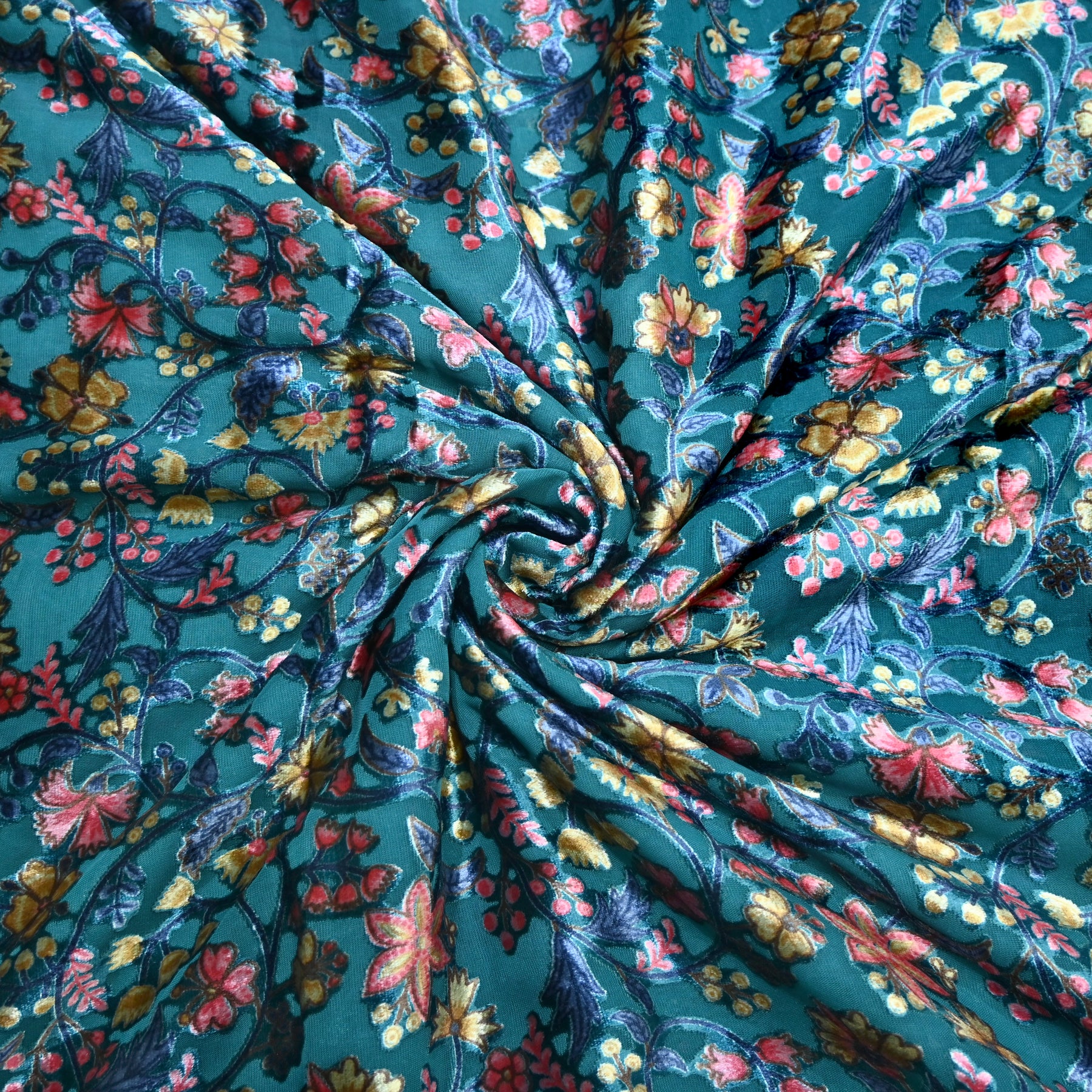 Experience luxury and elegance with our Velvet Brasso Printed Fabric, crafted to bring a royal touch to your designs. The soft velvet base enhances comfort and shine, while the intricate brasso prints add a glamorous pattern that stands out beautifully. Perfect for creating designer outfits, evening gowns, ethnic wear, and décor accents.