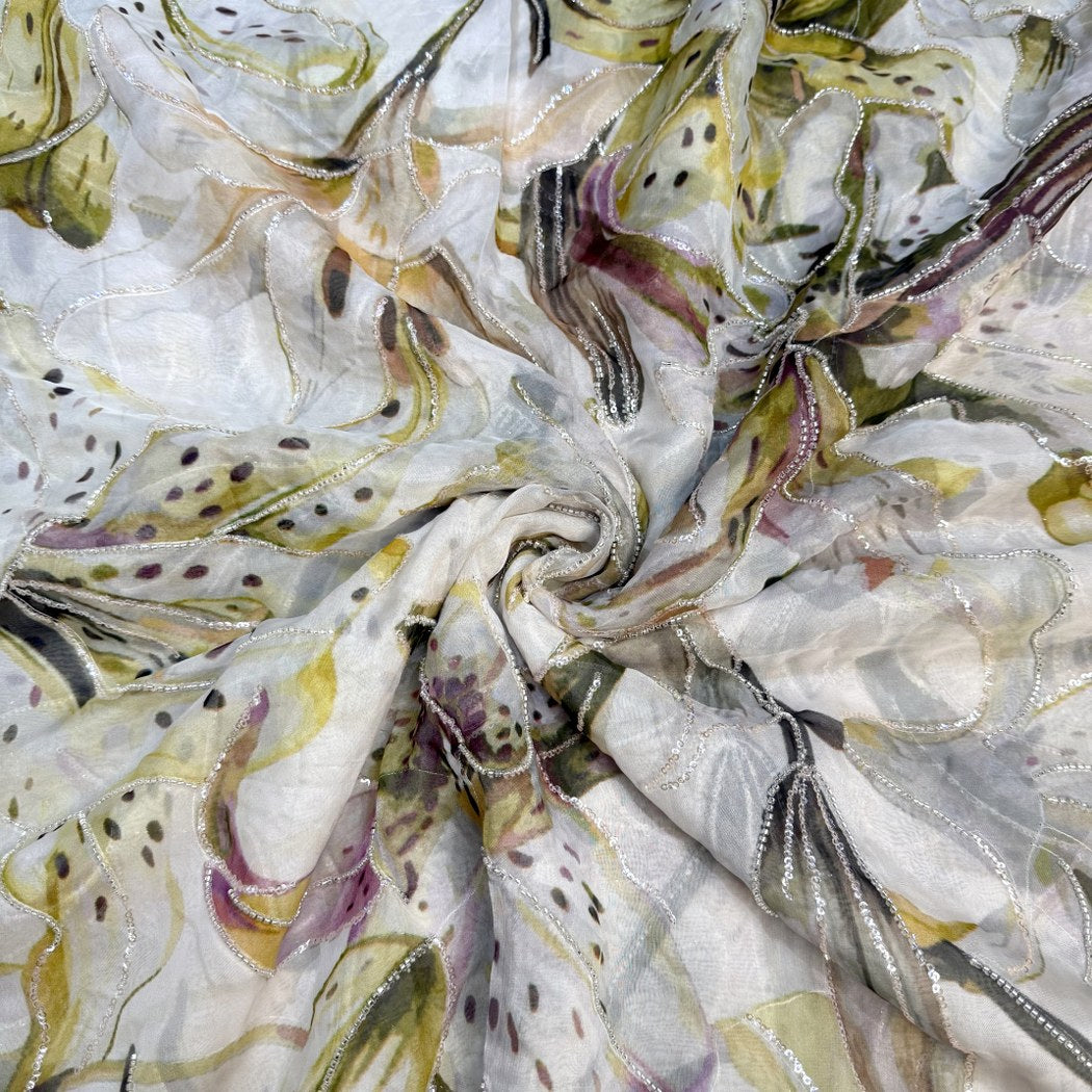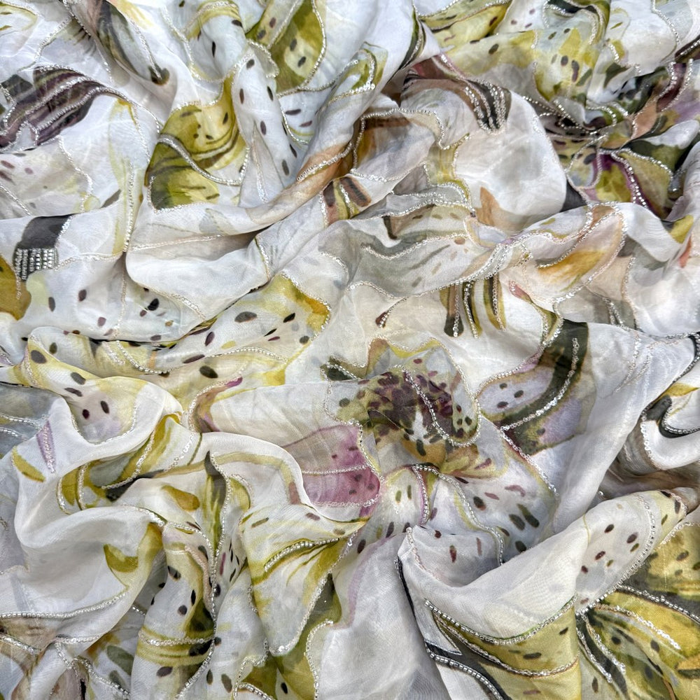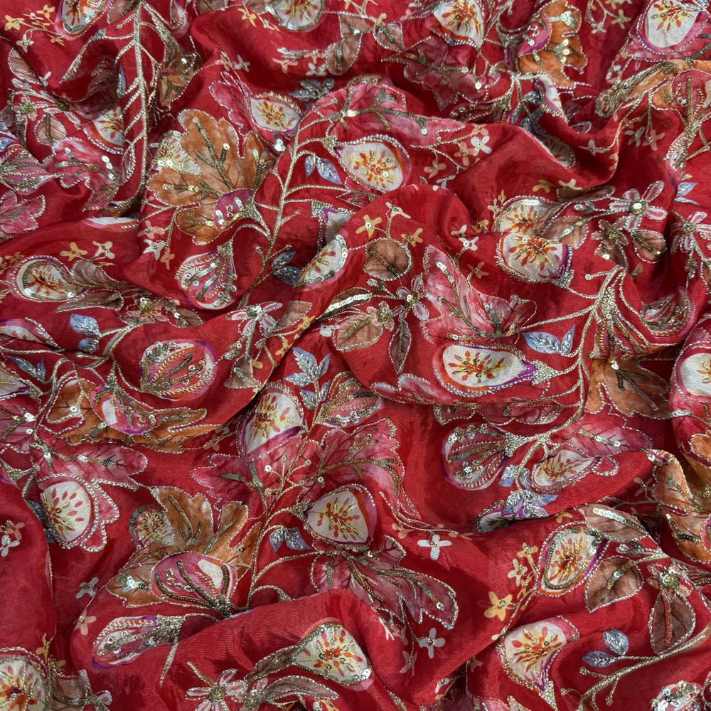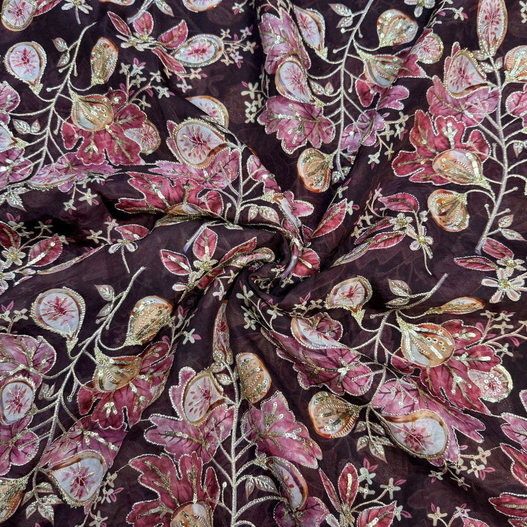 Viscose Organza Position Print With Zari Sequins Embroidery