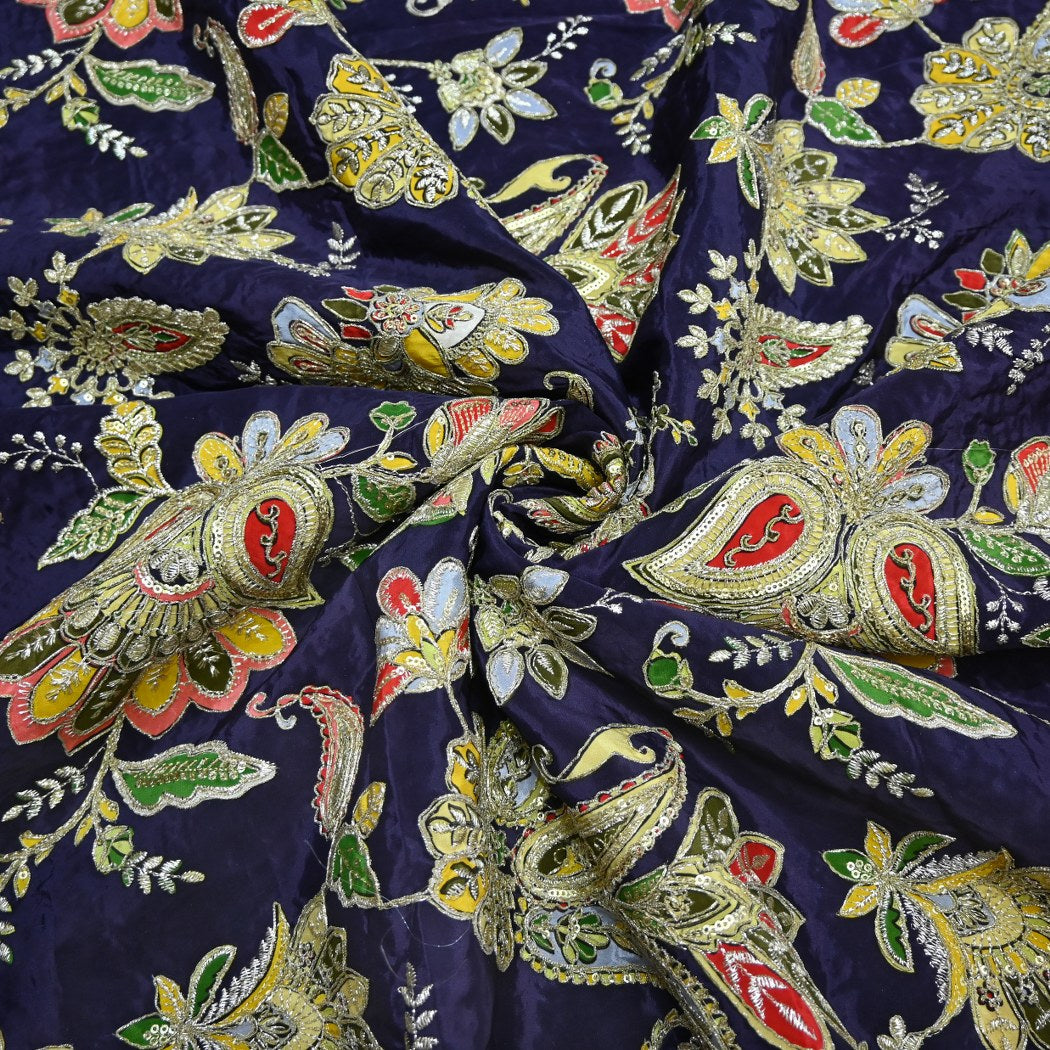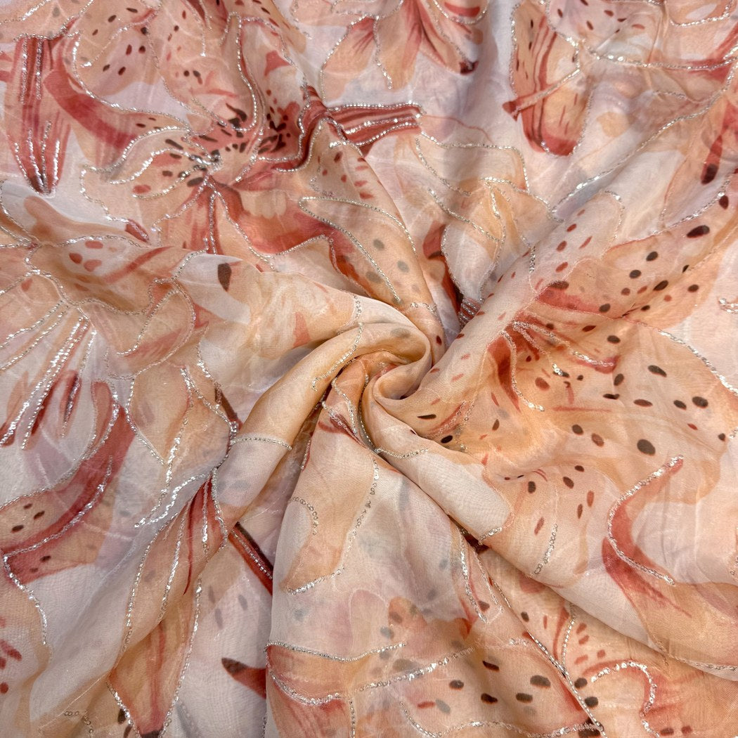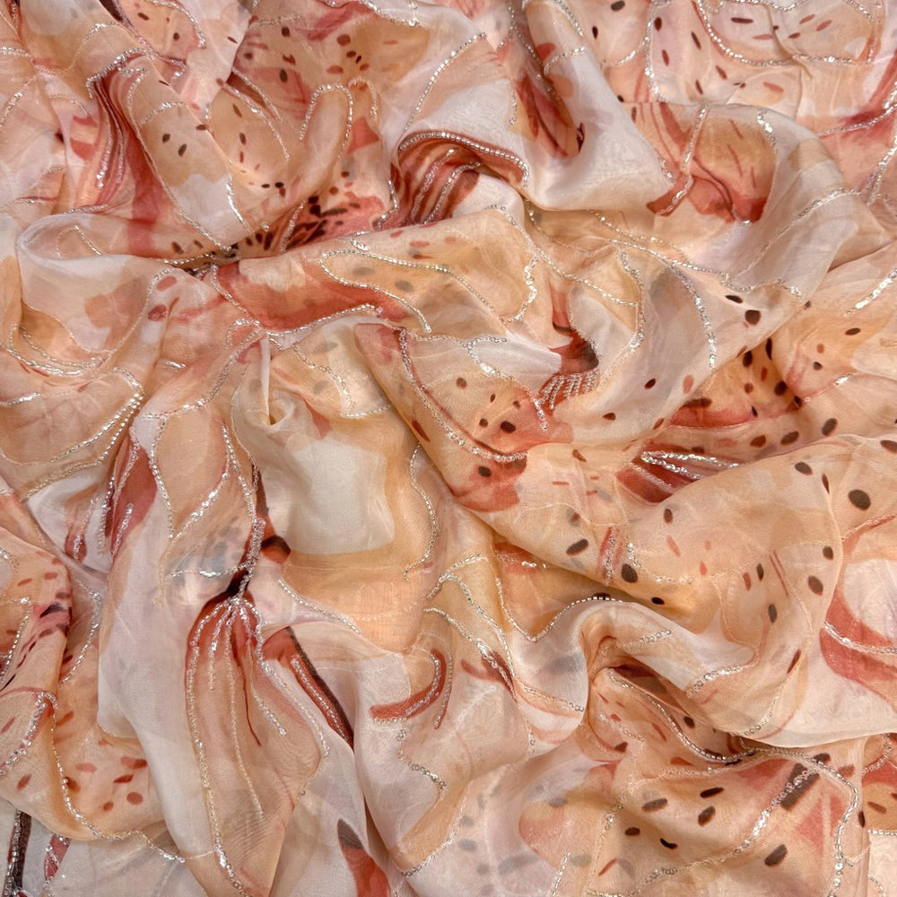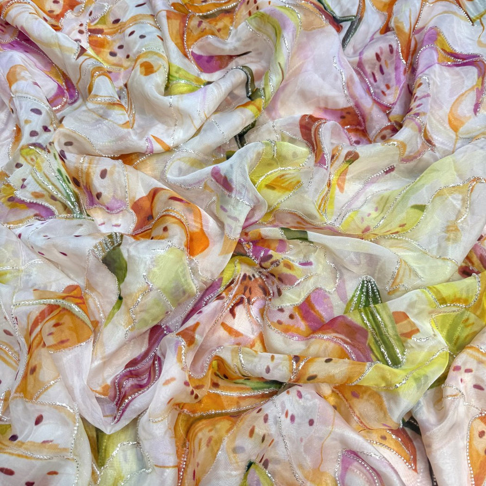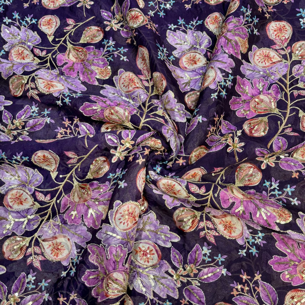 Viscose Organza Position Print With Zari Sequins Embroidery