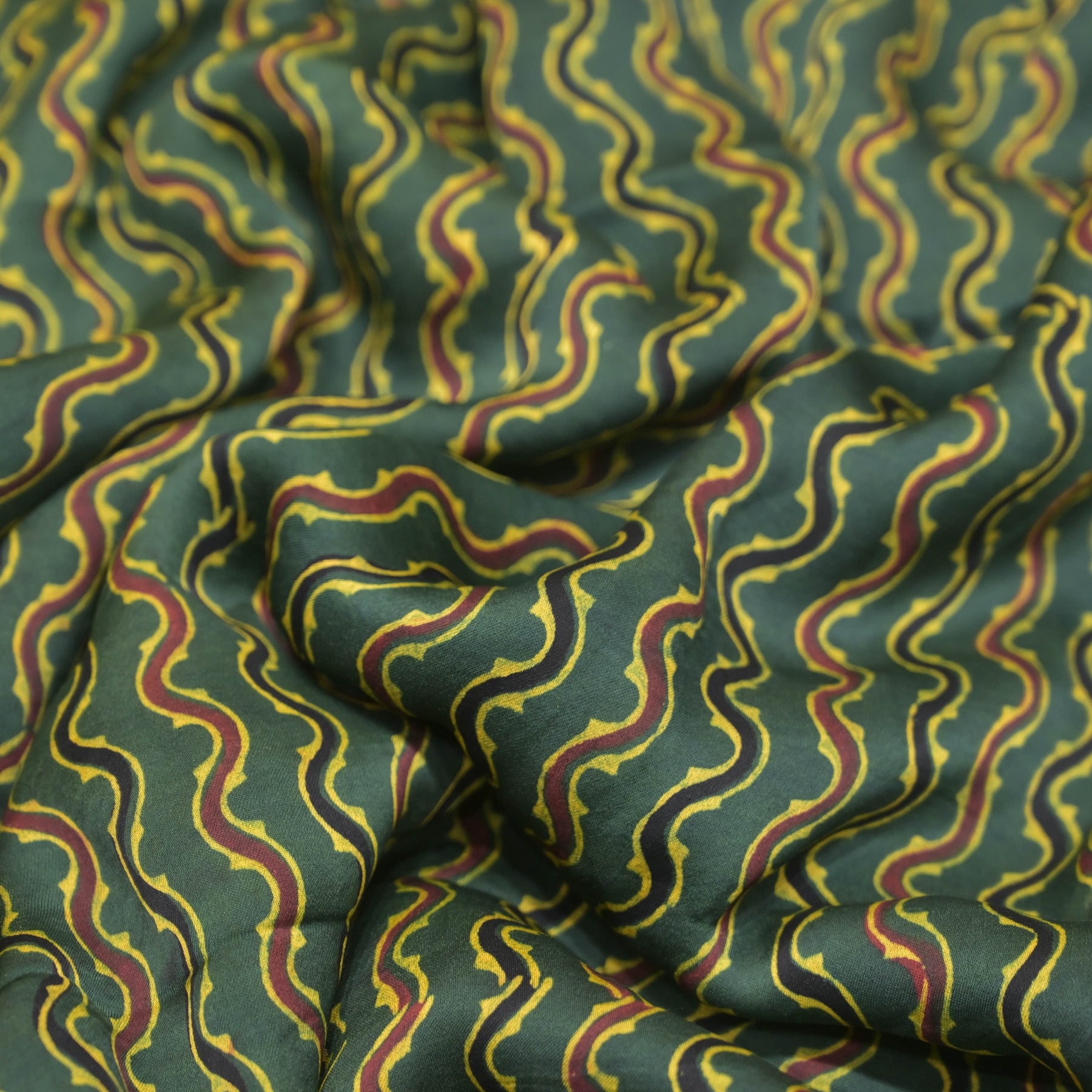 Product name: Bottle Green Modal Satin Fabric in Wavy Digital PrintĀ