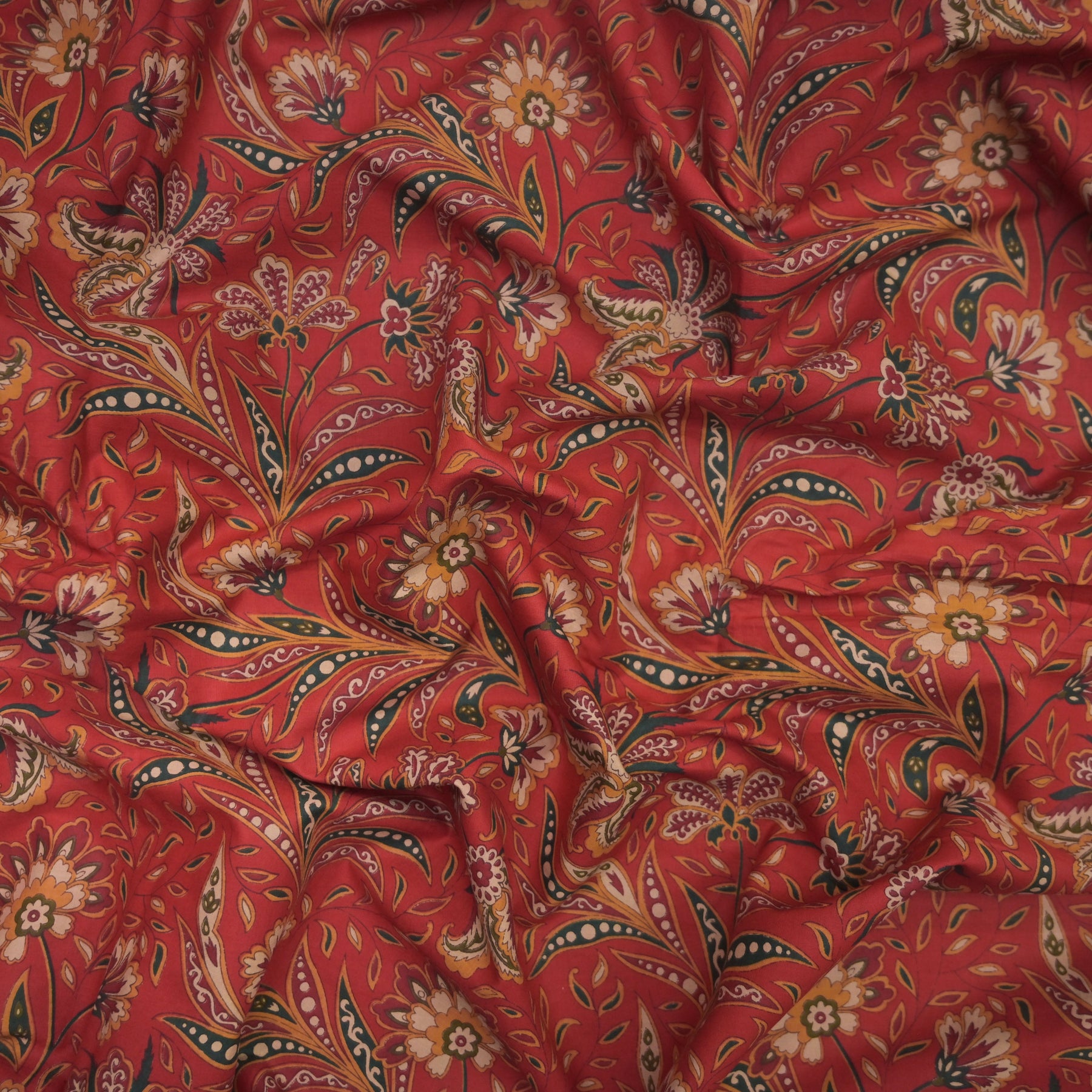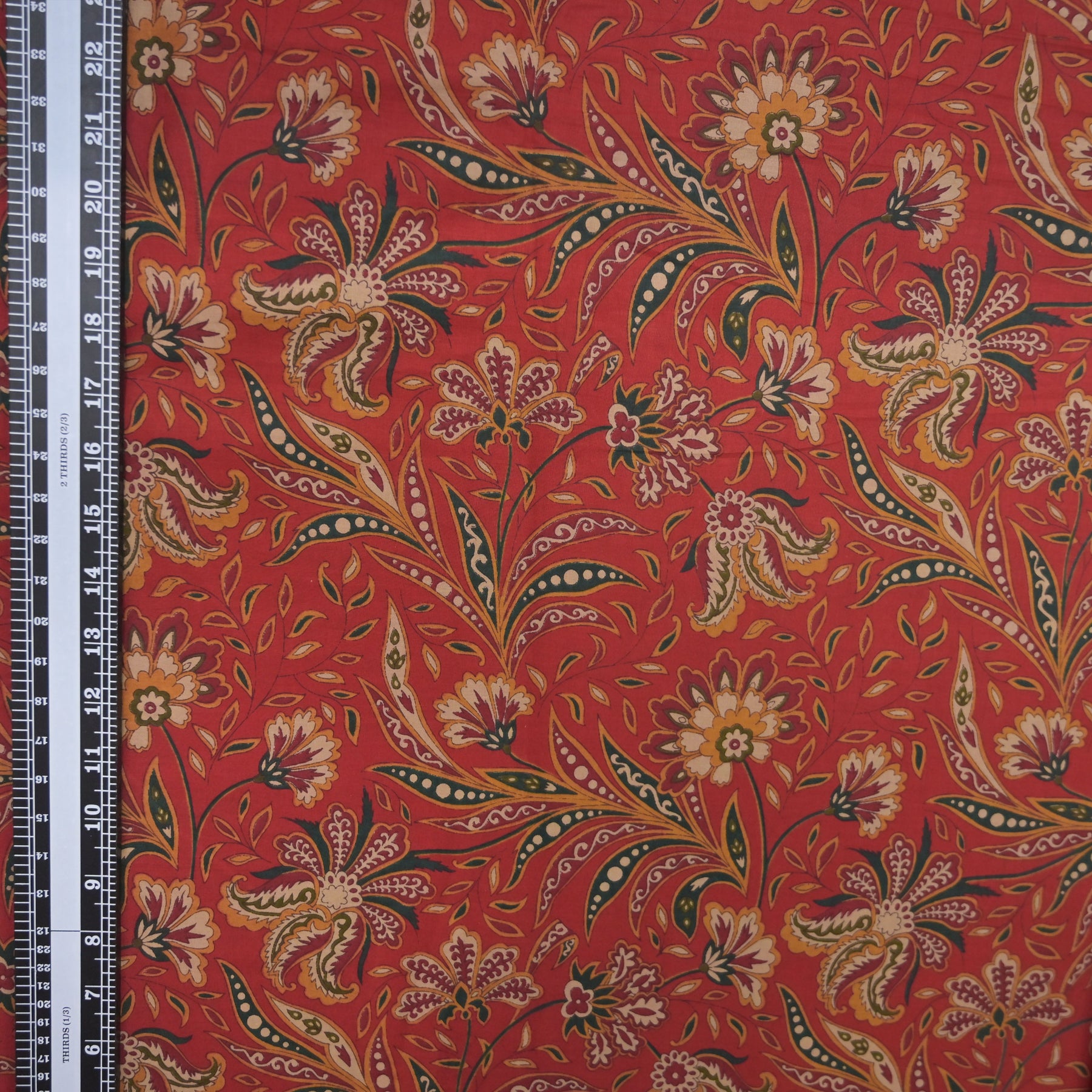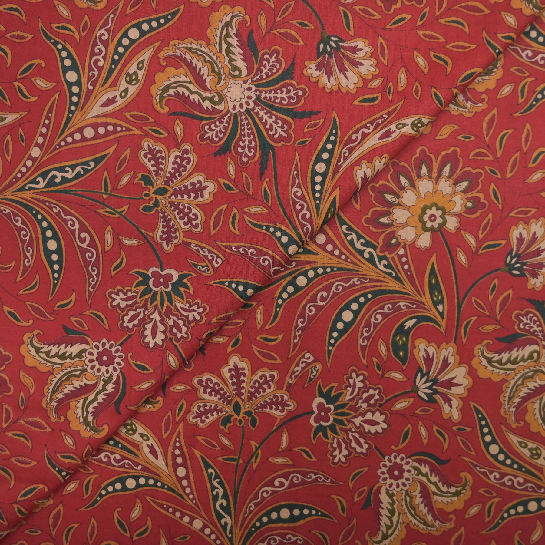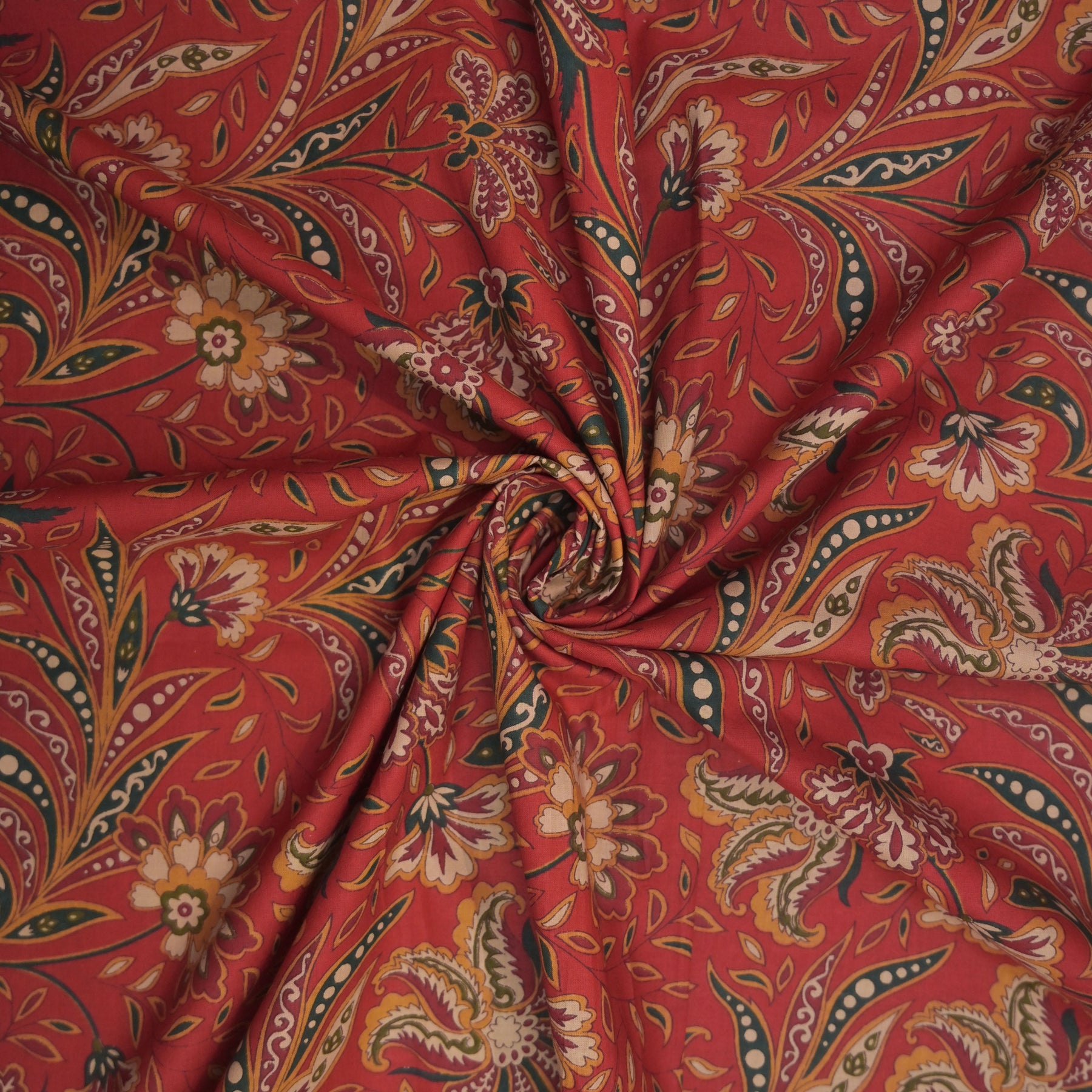 Bring timeless charm to your creations with this Deep Red Cotton Fabric adorned with beautiful allover Floral prints.